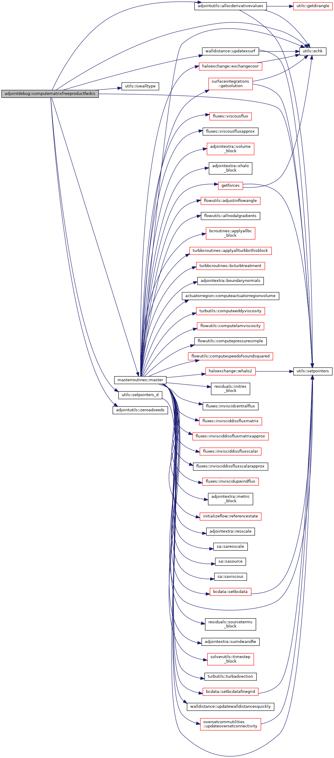 References communication::adflow_comm_world, adjointutils::allocderivativevalues(), inputphysics::alpha, inputphysics::beta, iteration::currentlevel, adjointvars::derivvarsallocated, blockpointers::dw, blockpointers::dwd, utils::echk(), inputphysics::equations, iteration::groundlevel, adjointvars::ialpha, adjointvars::ibeta, adjointvars::idensity, blockpointers::il, adjointvars::imach, adjointvars::imachgrid, adjointvars::ipointrefx, adjointvars::ipointrefy, adjointvars::ipointrefz, adjointvars::ipressure, utils::iswalltype(), adjointvars::itemperature, blockpointers::jl, blockpointers::kl, inputphysics::mach, inputphysics::machcoef, inputphysics::machgrid, masterroutines::master(), blockpointers::nbocos, inputtimespectral::ntimeintervalsspectral, blockpointers::nviscbocos, flowvarrefstate::nw, flowvarrefstate::nwf, flowvarrefstate::pinfdim, inputphysics::pointref, constants::ransequations, inputphysics::rgasdim, flowvarrefstate::rhoinfdim, utils::setpointers(), utils::setpointers_d(), flowvarrefstate::tinfdim, walldistance::updatexsurf(), blockpointers::w, blockpointers::wd, blockpointers::x, walldistancedata::xsurf, constants::zero, and adjointutils::zeroadseeds().