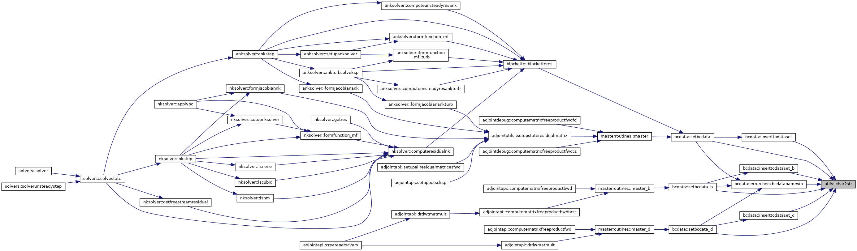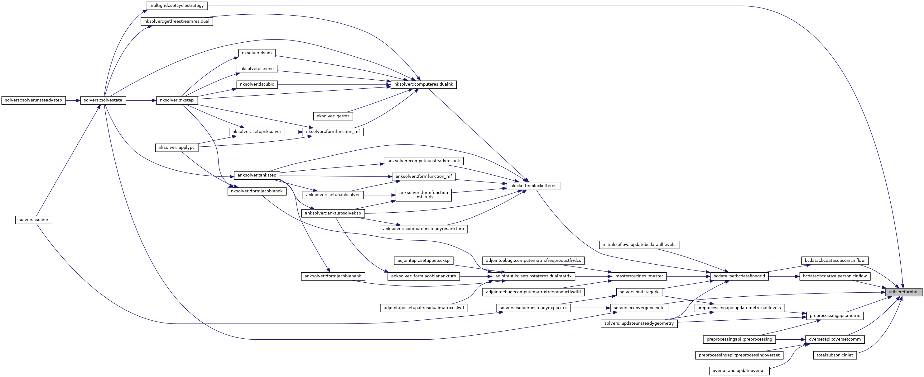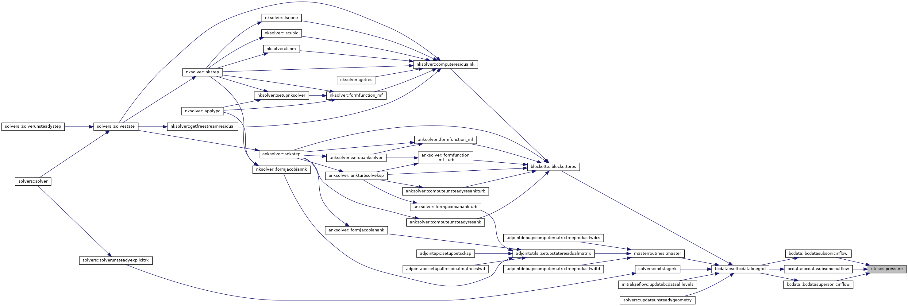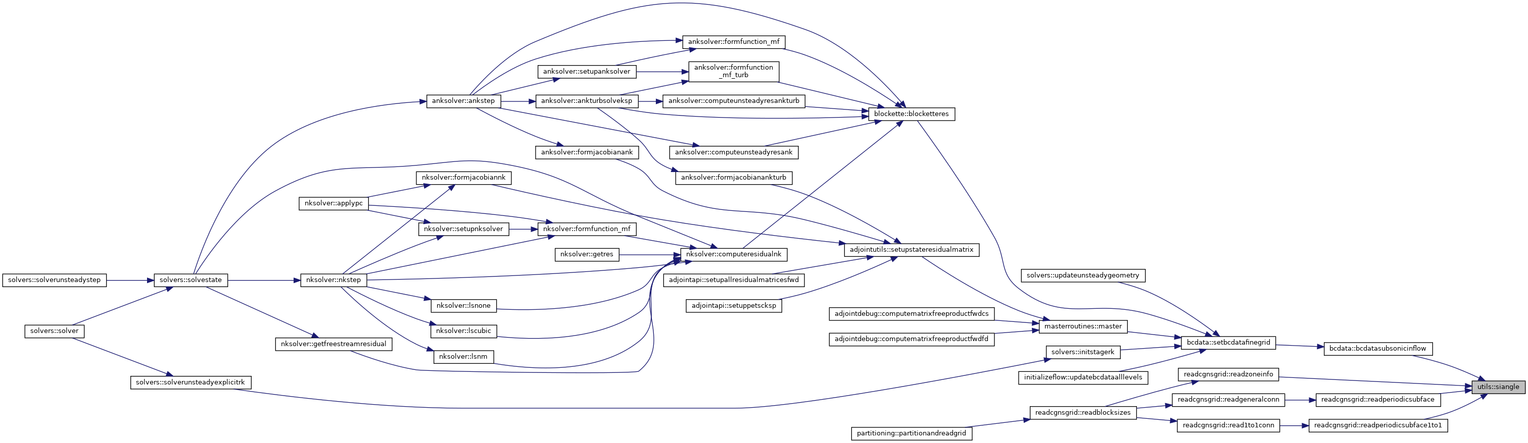 Referenced by actuatorregion::addactuatorregion(), preprocessingapi::allocatemetric(), adjointutils::allocderivativevalues(), bcdata::allocmembcdata(), fortranpc::allocpcmem(), anksolver::ankstep(), anksolver::ankturbsolveksp(), bcroutines::applyallbc(), turbbcroutines::applyallturbbc(), masterroutines::block_res_state(), blockette::blocketteres(), blockette::blocketterescore(), zippermesh::bowtieandisolationelimination(), buildclusterwalls(), usersurfaceintegrations::buildvolumeadts(), gridchecking::check1to1subfaces(), gridchecking::checkfaces(), oversetutilities::checkoverset(), oversetutilities::checkoversetpresent(), gridchecking::checksubfacecoor(), preprocessingapi::checksymmetry(), computecellwallpoint(), surfaceintegrations::computecpminfamily(), computedomainboundingboxes(), writecgnssurface::computeisovariable(), adjointdebug::computematrixfreeproductfwdcs(), adjointdebug::computematrixfreeproductfwdfd(), computenodalforces(), computenodalforces_d(), computenodaltractions(), computenodaltractions_b(), computenodaltractions_d(), walldistance::computenormalspacing(), surfaceintegrations::computesepsenmaxfamily(), tecplotio::computesurfaceoutputnodaldata(), anksolver::computetimestepmat(), anksolver::computeunsteadyresank(), anksolver::computeunsteadyresankturb(), solverutils::computeutau(), walldistance::computewalldistance(), computeweighting(), solvers::convergenceinfo(), cartmesh::createcartmesh(), adjointapi::createpetscvars(), zippermesh::createzippermesh(), zippermesh::determineclusterareas(), walldistance::determinedistance(), determinedonors(), pointmatchedcommpattern::determinefacehalos(), pointmatchedcommpattern::determinenumberofhalos(), walldistance::determinewallassociation(), oversetutilities::dumpiblank(), oversetcommutilities::exchangestatus(), oversetcommutilities::exchangesurfacedelta(), oversetcommutilities::exchangesurfaceiblanks(), smoothers::executedadistep(), smoothers::executerkstage(), sst::f1sst(), preprocessingapi::facerotationmatrices(), fortranpc::factorpcmatrix(), aleutils::fillcoor(), finaloversetcommstructures(), oversetapi::flagcellsinsurface(), oversetutilities::flagforcedrecv(), flagnearwallcells(), floodinteriorcells(), haloexchange::flowintegrationzippercomm(), anksolver::formfunction_mf(), anksolver::formfunction_mf_turb(), anksolver::formjacobianank(), anksolver::formjacobianankturb(), oversetutilities::fringereduction(), getareas(), getareasensitivity(), getcellcenters(), getcellcgnsblockids(), warping::getcgnsmeshindices(), getcptargets(), nksolver::getcurrentresidual(), getforces(), getforces_b(), getforces_d(), nksolver::getfreestreamresidual(), warping::getgrid(), getheatflux(), nksolver::getinfo(), nksolver::getinfosize(), getliftdirfromsymmetry(), oversetutilities::getoversetiblank(), nksolver::getres(), surfaceintegrations::getsolution(), surfaceintegrations::getsolution_b(), warping::getstateperturbation(), nksolver::getstates(), surfaceutils::getsurfaceconnectivity(), surfaceutils::getsurfacefamily(), warping::getsurfaceperturbation(), surfaceutils::getsurfacepoints(), surfaceutils::getsurfacesize(), gettnswall(), solverutils::gridvelocitiescoarselevels(), solverutils::gridvelocitiesfinelevel(), solverutils::gridvelocitiesfinelevelpart1(), solverutils::gridvelocitiesfinelevelpart2(), heatfluxes(), initializeflow::infchangecorrection(), bcdata::initbcdata(), zippermesh::initbcdataiblank(), initializeflow::initdepvarandhalos(), initializeflow::initializehalos(), oversetinitialization::initializestatus(), residuals::initres(), actuatorregion::integrateactuatorregions(), aleutils::interpcoor(), usersurfaceintegrations::interpolateintegrationsurfaces(), initializeflow::interpolatespectralsolution(), oversetutilities::irregularcellcorrection(), kt::kt_block(), kw::kw_block(), walldistance::localviscoussurfacemesh(), gapboundaries::makegapboundarystrings(), masterroutines::master(), masterroutines::master_d(), preprocessingapi::metric(), adjointutils::mymatcreate(), solverutils::normalvelocitiesalllevels(), oversetapi::oversetcomm(), fortranpc::pcmatmult(), usersurfaceintegrations::performinterpolation(), anksolver::physicalitycheckank(), anksolver::physicalitycheckankturb(), preprocessingapi::preprocessing(), preprocessingapi::preprocessingadjoint(), initializeflow::readrestartfile(), aleutils::recovercoor(), adjointutils::referenceshocksensor(), oversetinitialization::reinitializestatus(), initializeflow::releaseextramembcs(), adjointutils::resetfdreference(), haloexchange::reshalo1(), residuals::residual(), smoothers::rungekuttasmoother(), adjointapi::savecellcenters(), bcdata::setbcdata(), bcdata::setbcdatacoarsegrid(), bcdata::setbcdatafinegrid(), setcptargets(), oversetapi::setexplicitholecut(), preprocessingapi::setfamilyinfofaces(), adjointutils::setfdreference(), preprocessingapi::setglobalcellsandnodes(), warping::setgrid(), warping::setgridforoneinstance(), oversetutilities::setiblankarray(), nksolver::setinfo(), aleutils::setlevelale(), fortranpc::setpcvec(), setpointers_d(), preprocessingapi::setporosities(), initializeflow::setpressureandcomputeenergy(), preprocessingapi::setreferencevolume(), nksolver::setrvec(), anksolver::setrvecank(), anksolver::setrvecankturb(), nksolver::setstates(), preprocessingapi::setsurfacefamilyinfo(), settnswall(), initializeflow::setuniformflow(), adjointutils::setup_3x3x3_coloring(), adjointutils::setup_5x5x5_coloring(), adjointutils::setup_bf_coloring(), adjointutils::setup_drdw_euler_coloring(), adjointutils::setup_drdw_visc_coloring(), adjointutils::setup_pc_coloring(), amg::setupamg(), fortranpc::setuppcmatrix(), adjointutils::setupstateresidualmatrix(), nksolver::setw(), anksolver::setwank(), nksolver::setwvec(), anksolver::setwvecank(), preprocessingapi::shiftcoorandvolumes(), aleutils::shiftlevelale(), solverutils::shiftsolution(), solverutils::slipvelocitiescoarselevels(), solverutils::slipvelocitiesfinelevel(), aleutils::slipvelocitiesfinelevel_ale(), zippermesh::slitelimination(), s