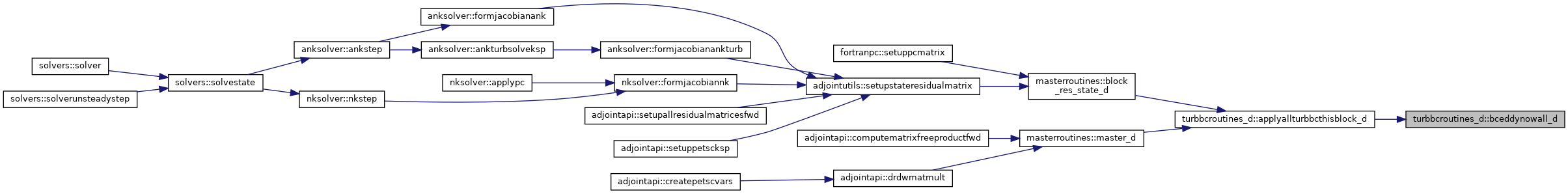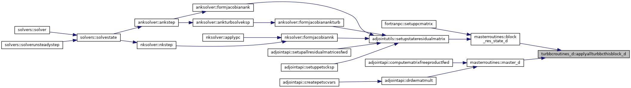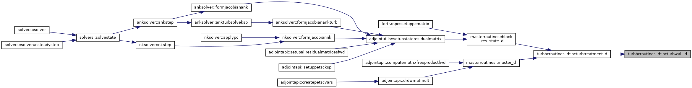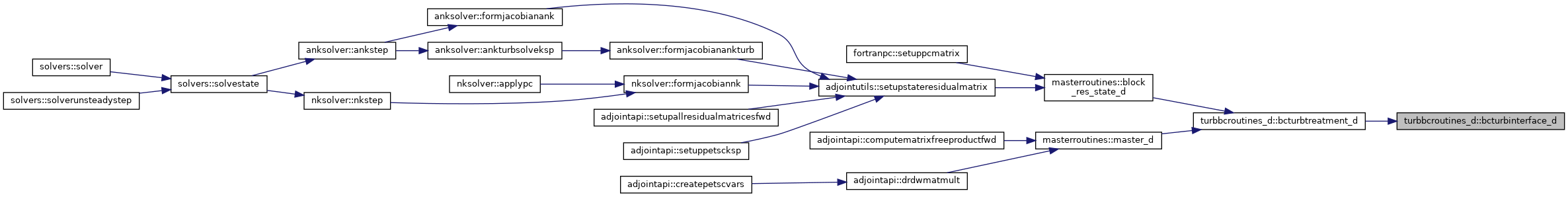 References bcturbfarfield_d(), bcturbinterface_d(), bcturbsymm(), bcturbwall_d(), blockpointers::bctype, blockpointers::bmti1, blockpointers::bmti2, blockpointers::bmtj1, blockpointers::bmtj2, blockpointers::bmtk1, blockpointers::bmtk2, blockpointers::bvti1, blockpointers::bvti1d, blockpointers::bvti2, blockpointers::bvti2d, blockpointers::bvtj1, blockpointers::bvtj1d, blockpointers::bvtj2, blockpointers::bvtj2d, blockpointers::bvtk1, blockpointers::bvtk1d, blockpointers::bvtk2, blockpointers::bvtk2d, constants::domaininterfaceall, constants::domaininterfacep, constants::domaininterfacerho, constants::domaininterfacerhouvw, constants::domaininterfacetotal, constants::eulerwall, constants::farfield, blockpointers::ie, blockpointers::je, blockpointers::ke, blockpointers::nbocos, constants::nswalladiabatic, constants::nswallisothermal, flowvarrefstate::nt1, flowvarrefstate::nt2, constants::oversetouterbound, constants::slidinginterface, constants::symm, constants::symmpolar, and constants::zero.