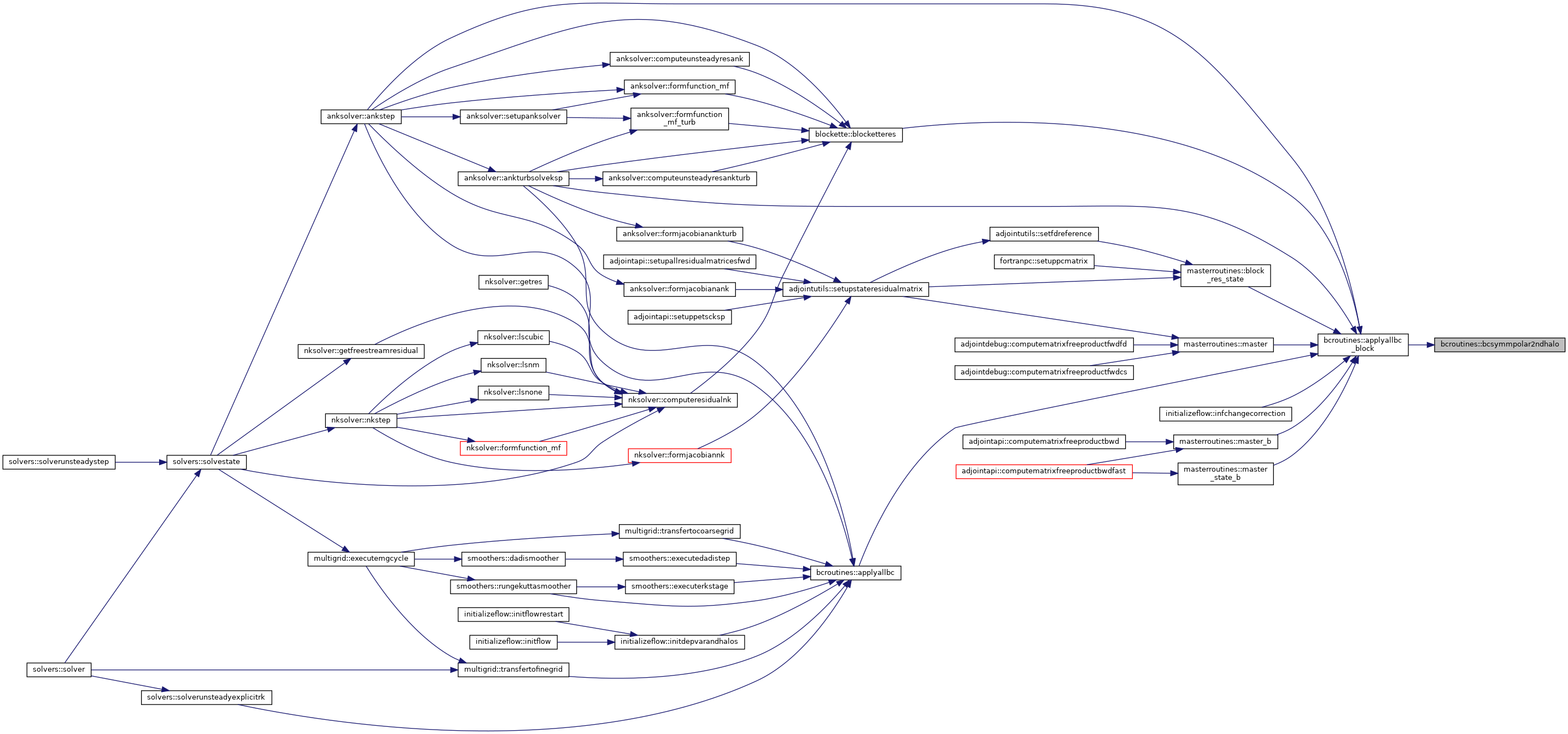| subroutine bcroutines::bcsymmpolar2ndhalo | ( | integer(kind=inttype), intent(in) | nn | ) |