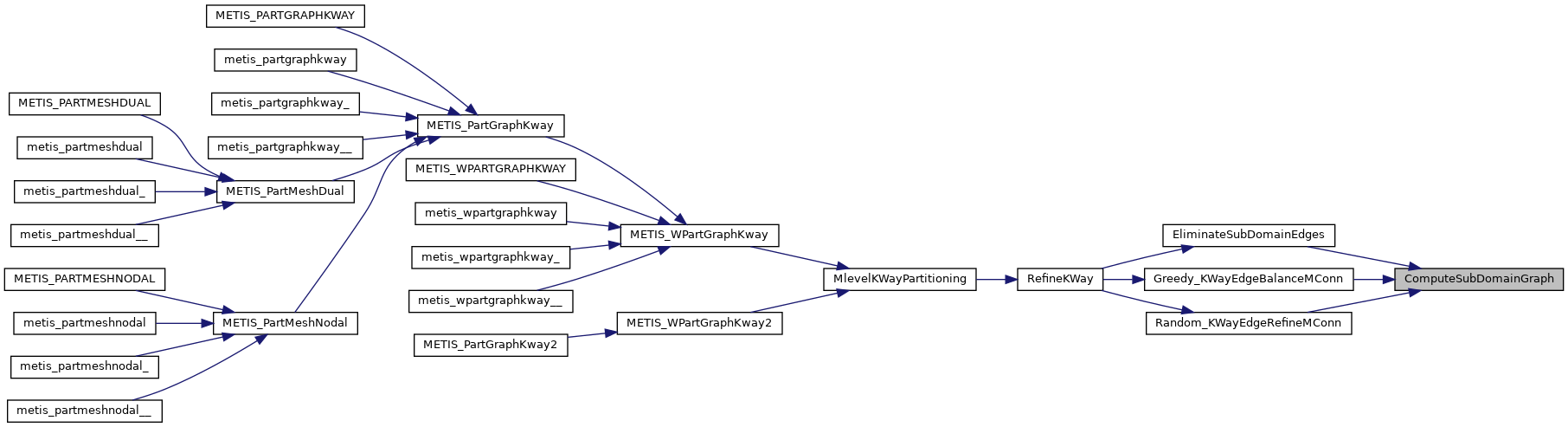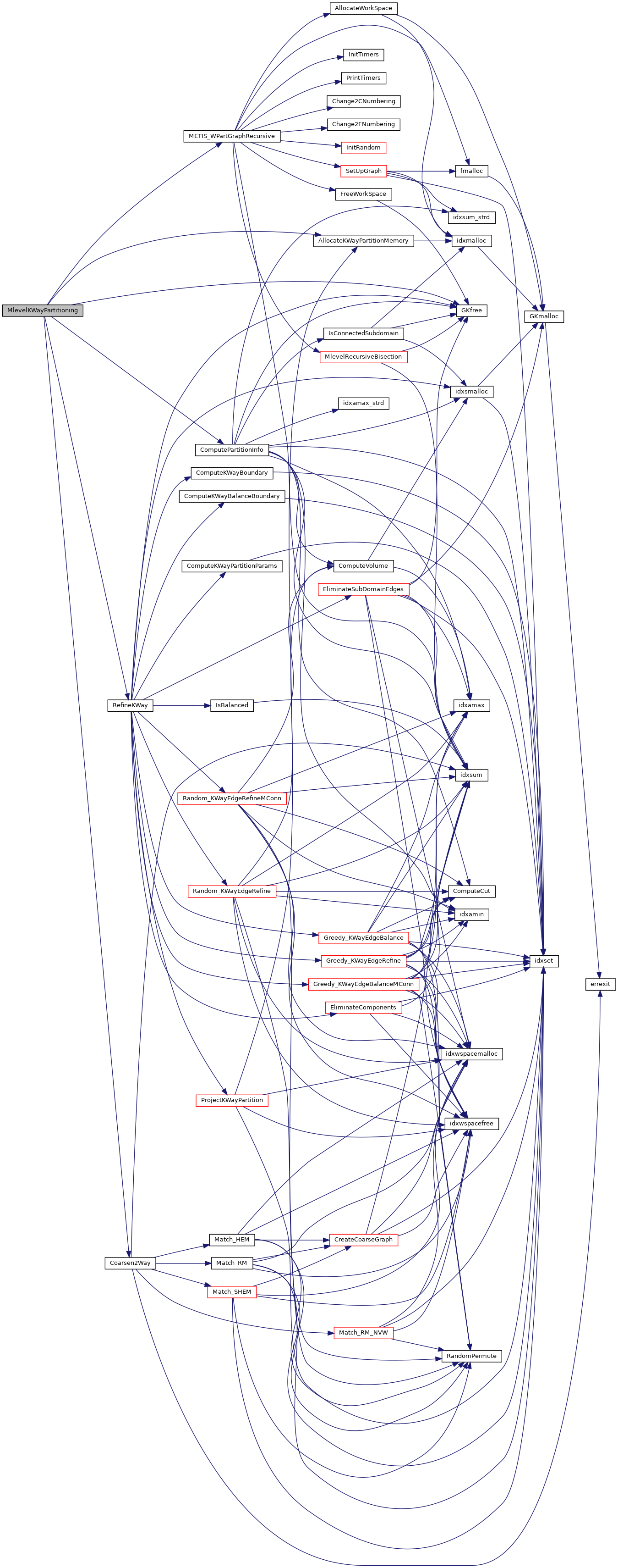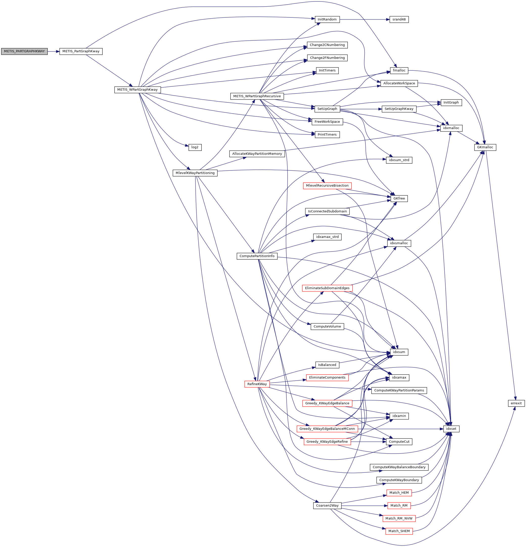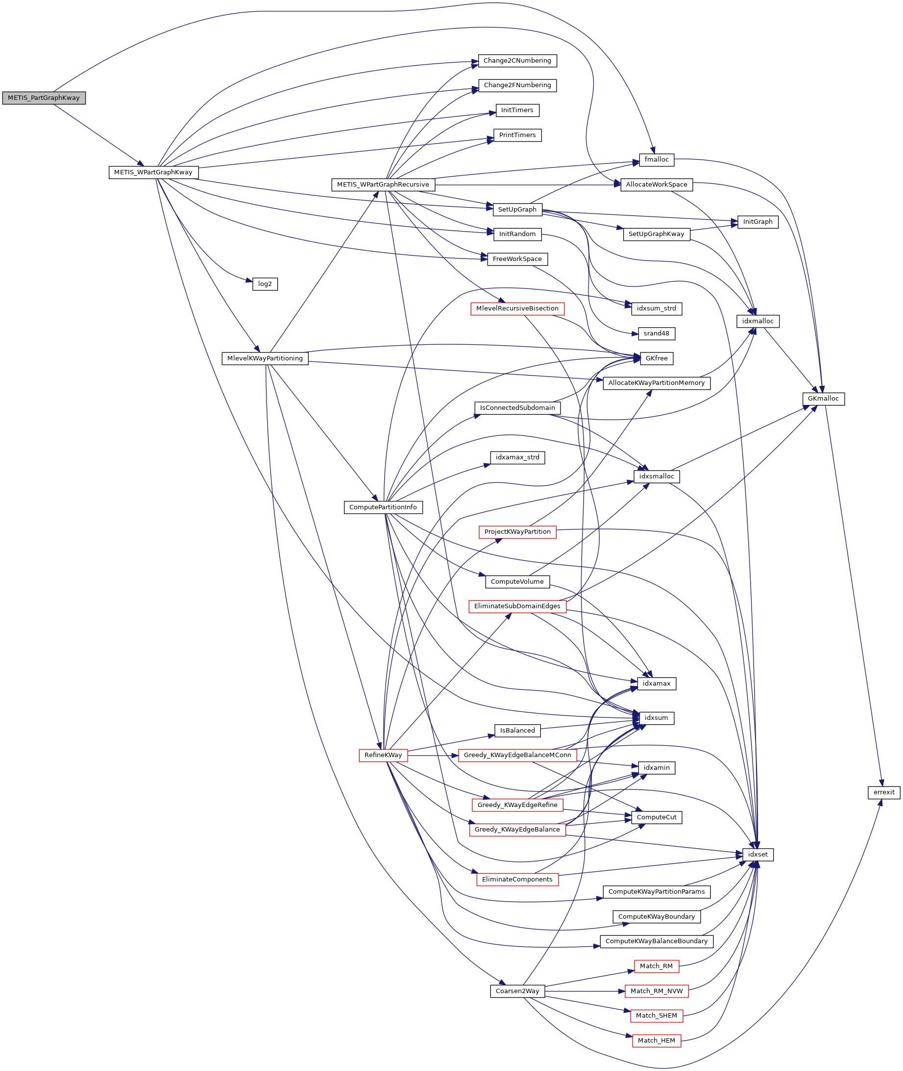 | void | METIS_PARTGRAPHKWAY (int *nvtxs, idxtype *xadj, idxtype *adjncy, idxtype *vwgt, idxtype *adjwgt, int *wgtflag, int *numflag, int *nparts, int *options, int *edgecut, idxtype *part) |