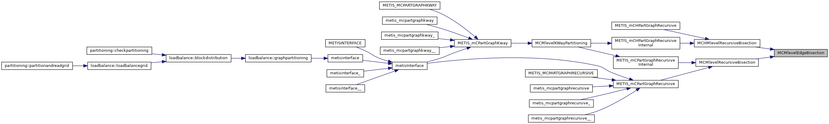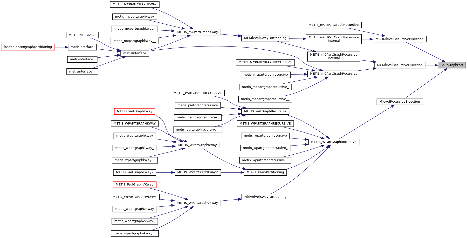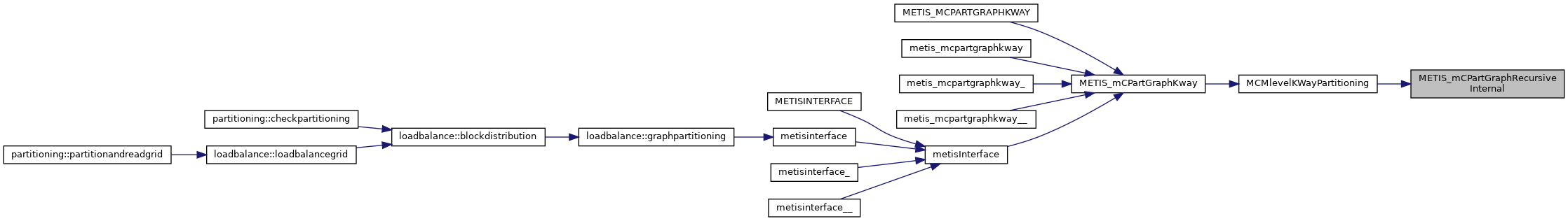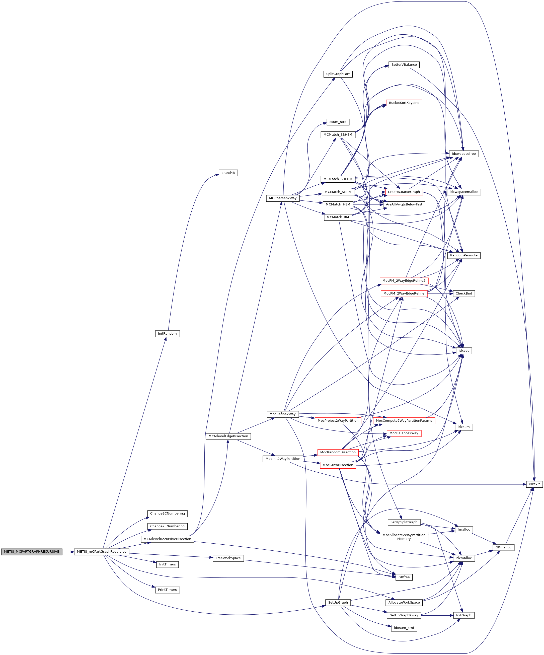 | void | metis_mcpartgraphrecursive (int *nvtxs, int *ncon, idxtype *xadj, idxtype *adjncy, idxtype *vwgt, idxtype *adjwgt, int *wgtflag, int *numflag, int *nparts, int *options, int *edgecut, idxtype *part) |