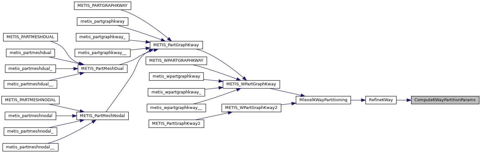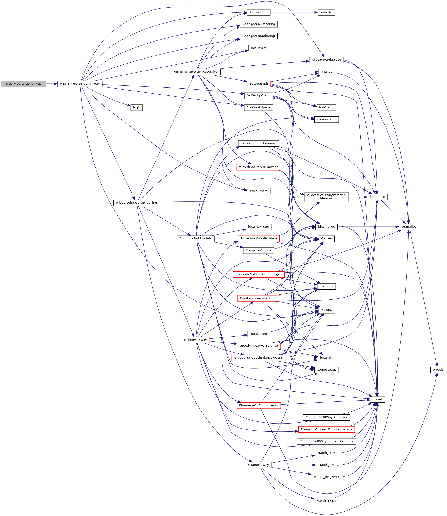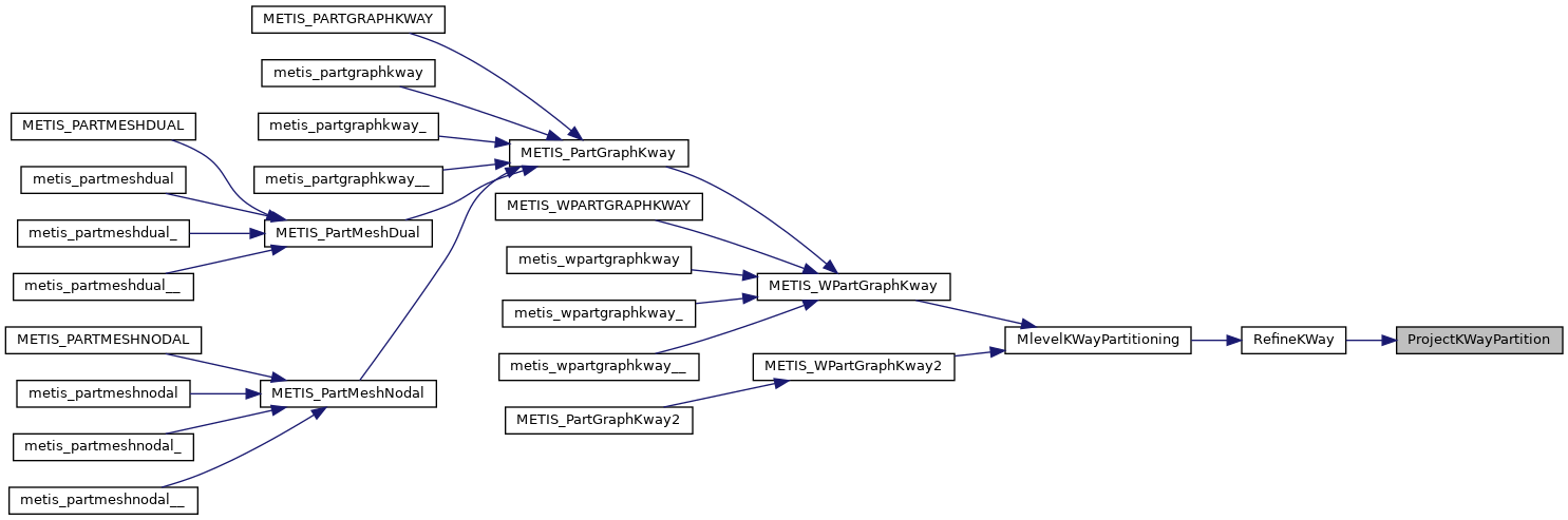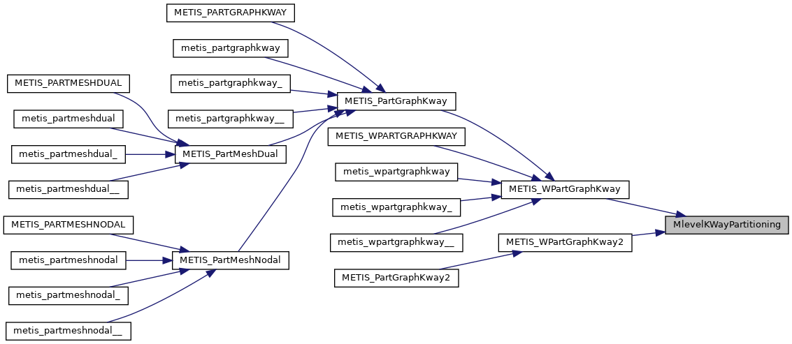 | void | metis_partgraphkway_ (int *nvtxs, idxtype *xadj, idxtype *adjncy, idxtype *vwgt, idxtype *adjwgt, int *wgtflag, int *numflag, int *nparts, int *options, int *edgecut, idxtype *part) |