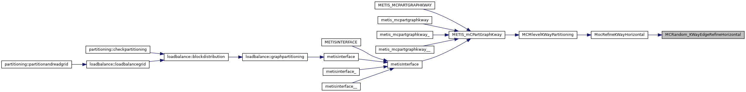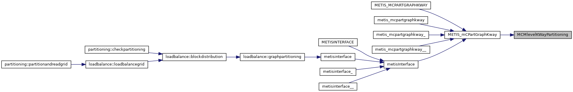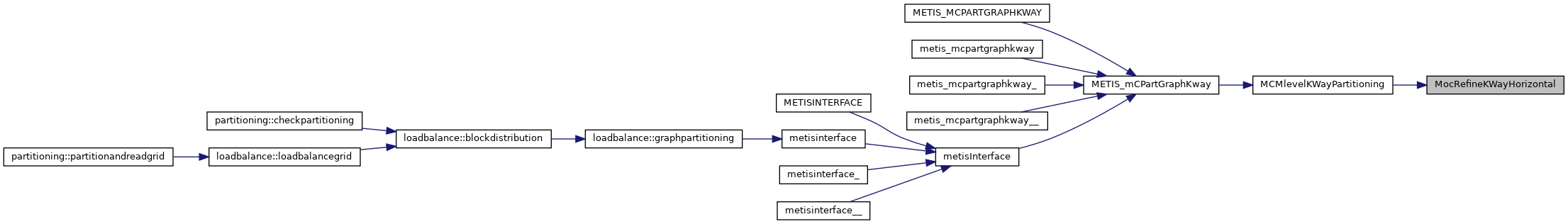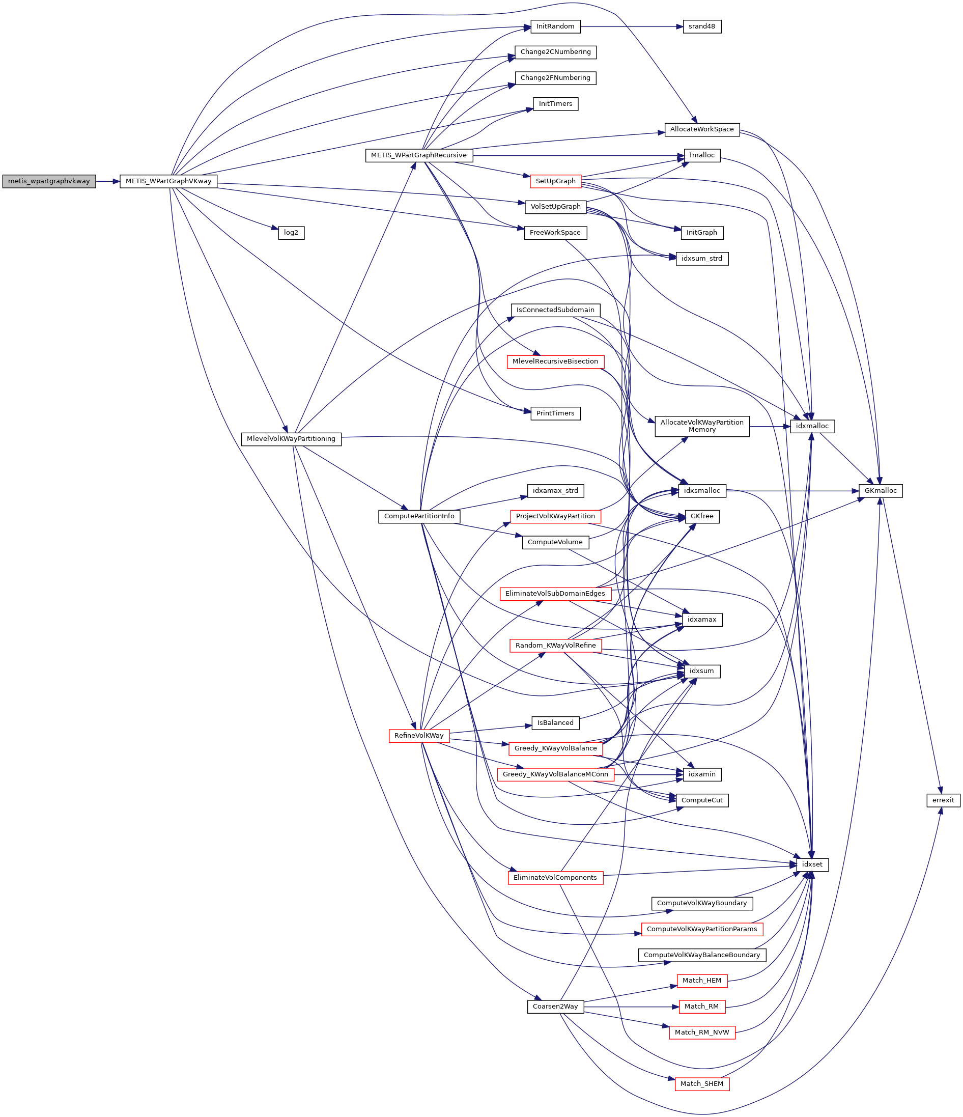 | void | metis_partgraphkway_ (int *nvtxs, idxtype *xadj, idxtype *adjncy, idxtype *vwgt, idxtype *adjwgt, int *wgtflag, int *numflag, int *nparts, int *options, int *edgecut, idxtype *part) |