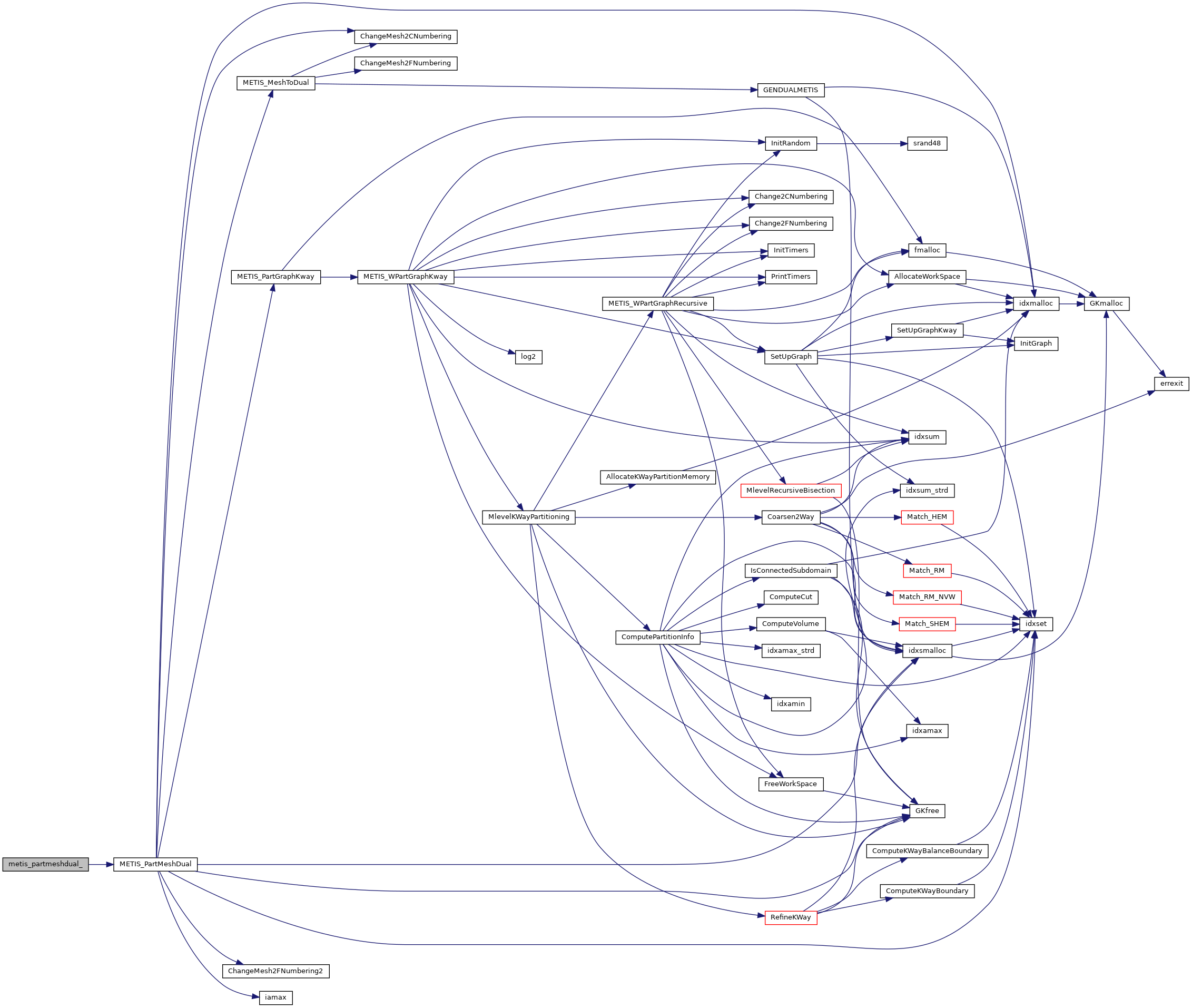 | void | metis_partmeshdual__ (int *ne, int *nn, idxtype *elmnts, int *etype, int *numflag, int *nparts, int *edgecut, idxtype *epart, idxtype *npart) |
