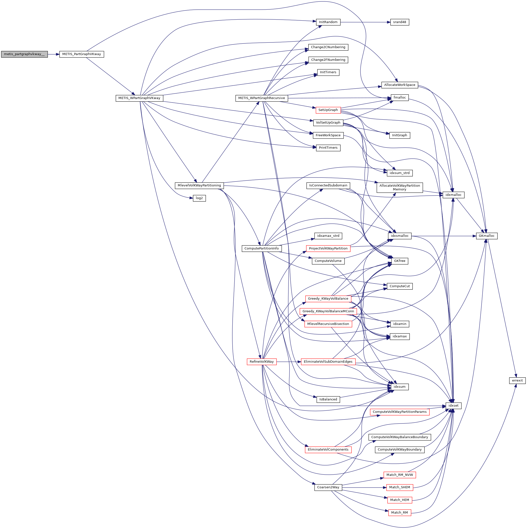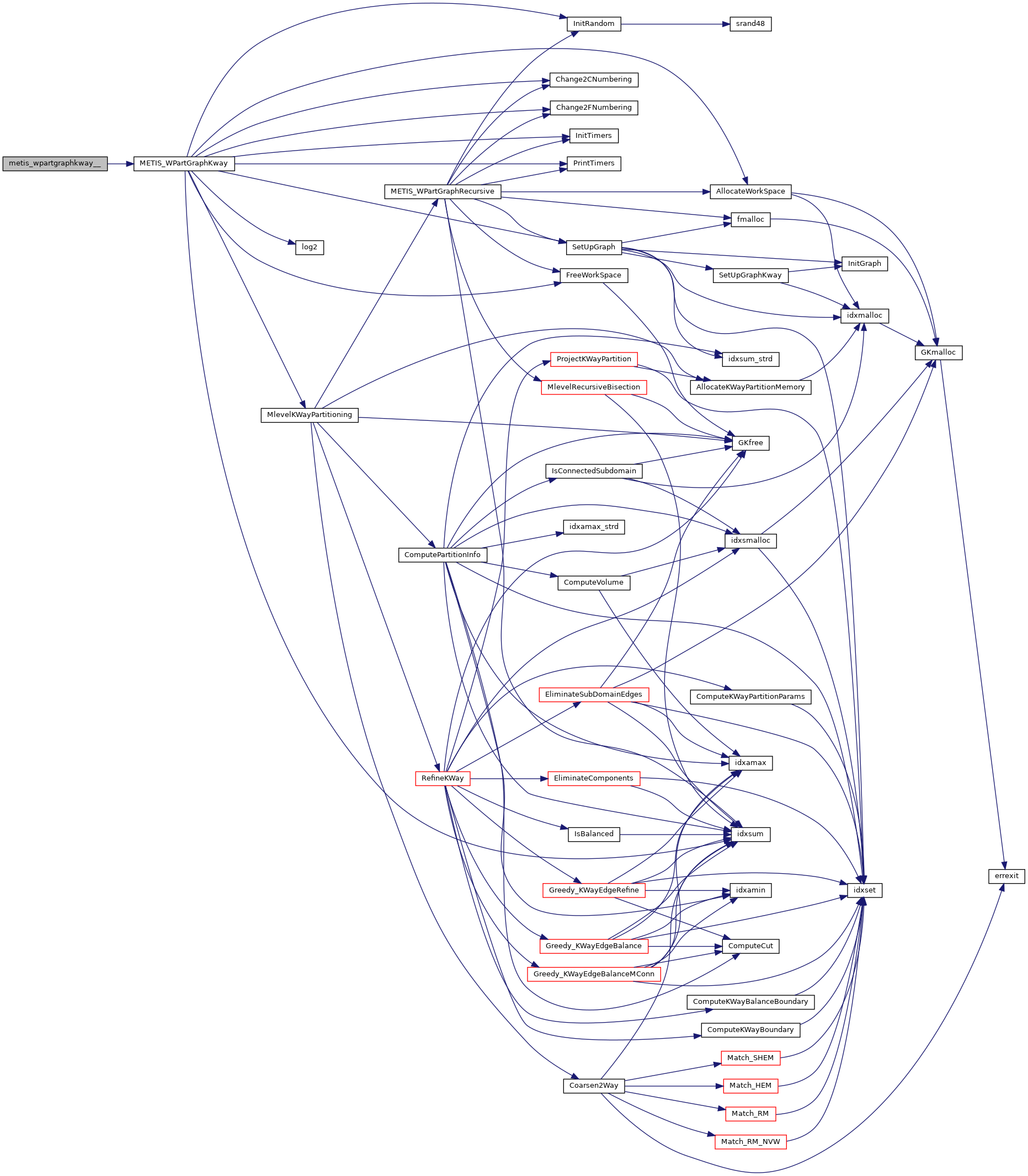 | void | metis_partgraphkway__ (int *nvtxs, idxtype *xadj, idxtype *adjncy, idxtype *vwgt, idxtype *adjwgt, int *wgtflag, int *numflag, int *nparts, int *options, int *edgecut, idxtype *part) |
