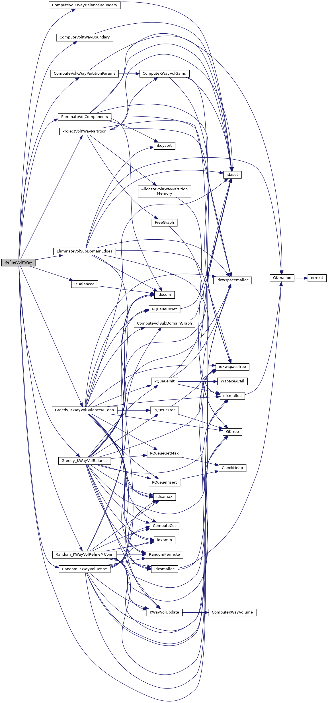 References ComputeVolKWayBalanceBoundary(), ComputeVolKWayBoundary(), ComputeVolKWayPartitionParams(), DBG_TIME, controldef::dbglvl, EliminateVolComponents(), EliminateVolSubDomainEdges(), graphdef::finer, graphdef::gdata, GKfree(), Greedy_KWayVolBalance(), Greedy_KWayVolBalanceMConn(), IFSET, IsBalanced(), LTERM, MALLOC_CHECK, controldef::ProjectTmr, ProjectVolKWayPartition(), graphdef::pwgts, Random_KWayVolRefine(), Random_KWayVolRefineMConn(), controldef::RefTmr, controldef::RType, RTYPE_KWAYRANDOM, RTYPE_KWAYRANDOM_MCONN, starttimer, stoptimer, and controldef::UncoarsenTmr.