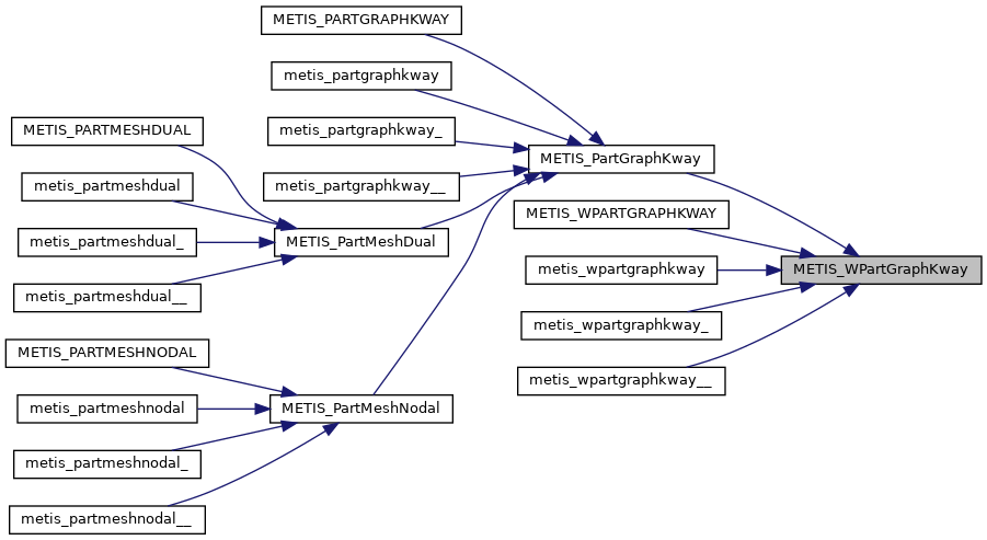 | void | METIS_WPARTGRAPHKWAY (int *nvtxs, idxtype *xadj, idxtype *adjncy, idxtype *vwgt, idxtype *adjwgt, int *wgtflag, int *numflag, int *nparts, float *tpwgts, int *options, int *edgecut, idxtype *part) |
