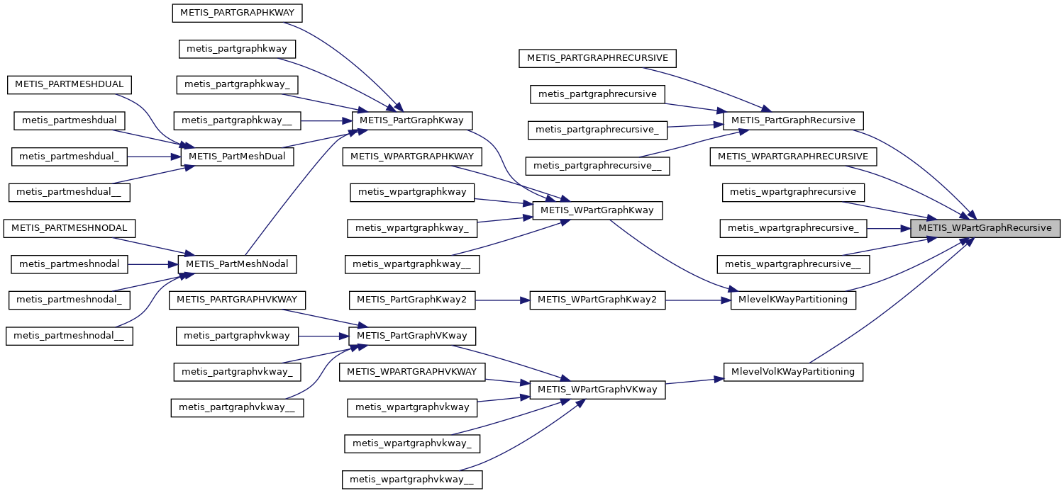 | void | metis_wpartgraphrecursive (int *nvtxs, idxtype *xadj, idxtype *adjncy, idxtype *vwgt, idxtype *adjwgt, int *wgtflag, int *numflag, int *nparts, float *tpwgts, int *options, int *edgecut, idxtype *part) |