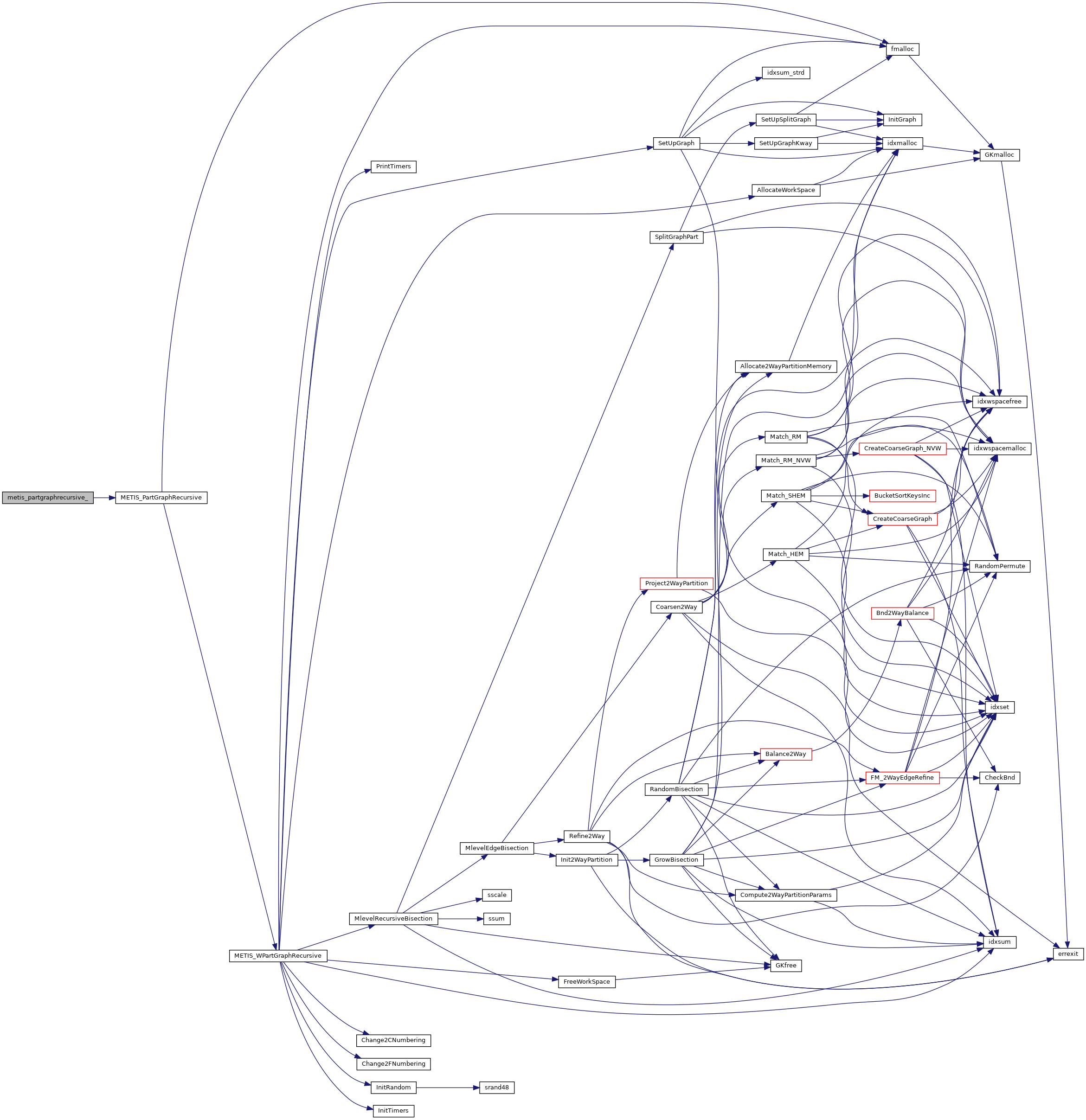 | void | METIS_PARTGRAPHRECURSIVE (int *nvtxs, idxtype *xadj, idxtype *adjncy, idxtype *vwgt, idxtype *adjwgt, int *wgtflag, int *numflag, int *nparts, int *options, int *edgecut, idxtype *part) |