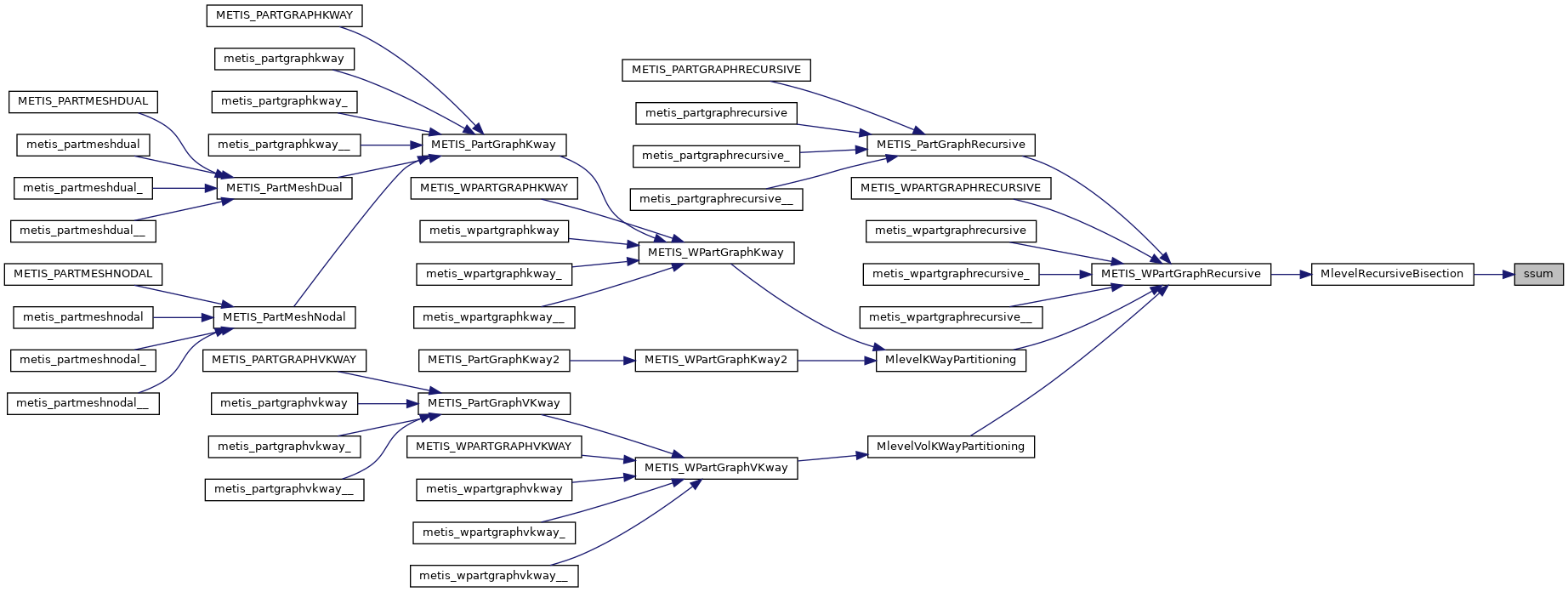 | void | metis_mcpartgraphrecursive__ (int *nvtxs, int *ncon, idxtype *xadj, idxtype *adjncy, idxtype *vwgt, idxtype *adjwgt, int *wgtflag, int *numflag, int *nparts, int *options, int *edgecut, idxtype *part) |