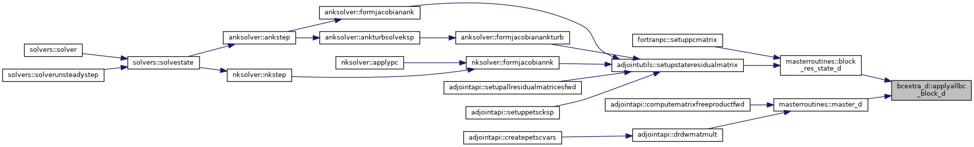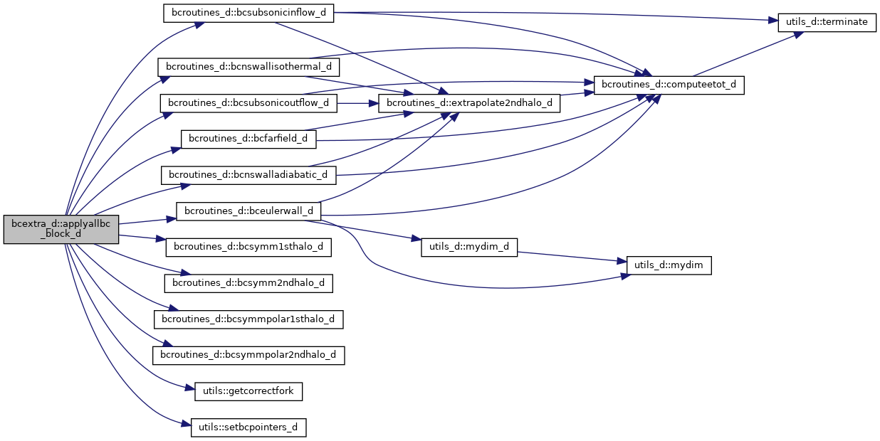 References blockpointers::bcdatad, bcroutines_d::bceulerwall_d(), bcroutines_d::bcfarfield_d(), bcroutines_d::bcnswalladiabatic_d(), bcroutines_d::bcnswallisothermal_d(), bcroutines_d::bcsubsonicinflow_d(), bcroutines_d::bcsubsonicoutflow_d(), bcroutines_d::bcsymm1sthalo_d(), bcroutines_d::bcsymm2ndhalo_d(), bcroutines_d::bcsymmpolar1sthalo_d(), bcroutines_d::bcsymmpolar2ndhalo_d(), blockpointers::bctype, iteration::currentlevel, constants::eulerwall, constants::farfield, utils::getcorrectfork(), iteration::groundlevel, flowvarrefstate::kpresent, constants::massbleedoutflow, blockpointers::nbocos, constants::nswalladiabatic, constants::nswallisothermal, blockpointers::nviscbocos, inputdiscretization::precond, utils::setbcpointers_d(), constants::subsonicinflow, constants::subsonicoutflow, constants::symm, and constants::symmpolar.