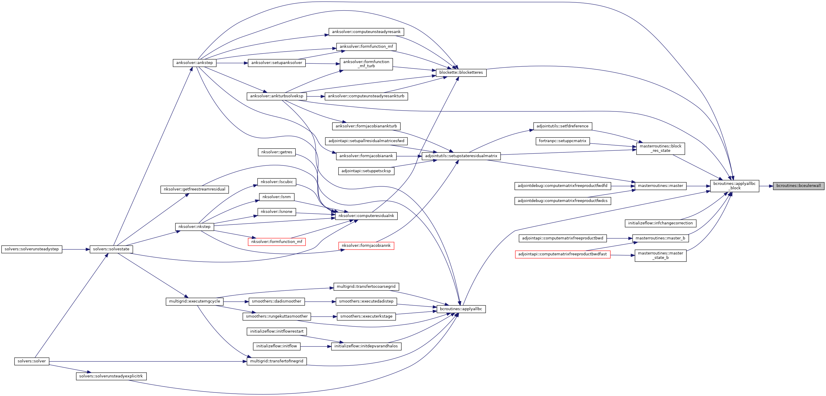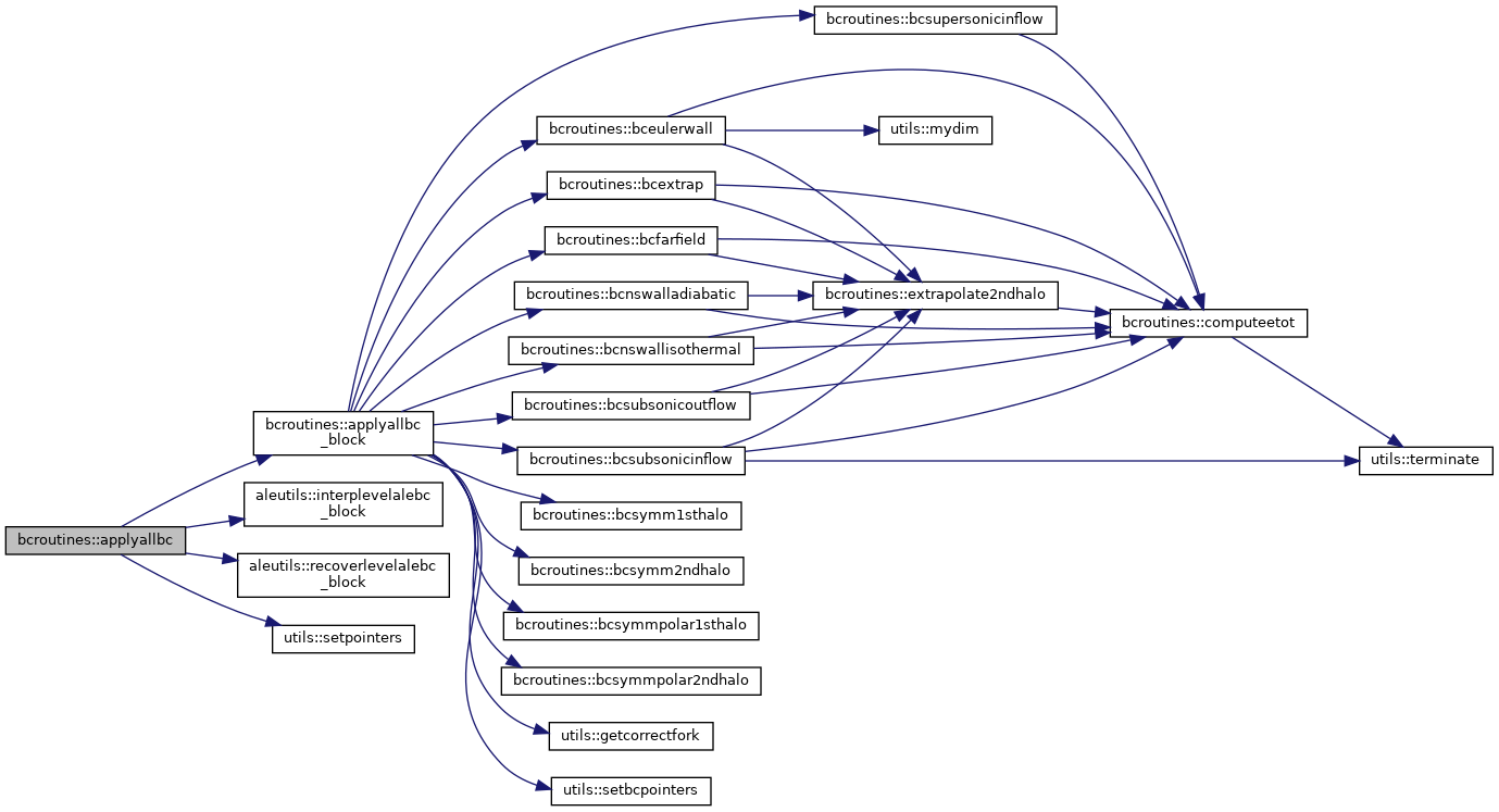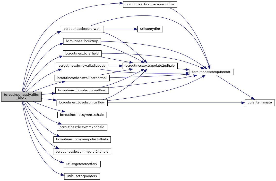References blockpointers::aa, bceulerwall(), bcextrap(), bcfarfield(), bcnswalladiabatic(), bcnswallisothermal(), bcsubsonicinflow(), bcsubsonicoutflow(), bcsupersonicinflow(), bcsymm1sthalo(), bcsymm2ndhalo(), bcsymmpolar1sthalo(), bcsymmpolar2ndhalo(), blockpointers::bctype, blockpointers::bmti1, blockpointers::bmti2, blockpointers::bmtj1, blockpointers::bmtj2, blockpointers::bmtk1, blockpointers::bmtk2, blockpointers::d2wall, blockpointers::dw, constants::eulerwall, constants::extrap, constants::farfield, blockpointers::fw, blockpointers::gamma, utils::getcorrectfork(), blockpointers::il, blockpointers::jl, blockpointers::kl, constants::massbleedoutflow, blockpointers::nbocos, constants::nswalladiabatic, constants::nswallisothermal, blockpointers::nviscbocos, blockpointers::p, blockpointers::rev, blockpointers::rlv, blockpointers::s, blockpointers::scratch, blockpointers::sectionid, utils::setbcpointers(), blockpointers::sfacei, blockpointers::sfacej, blockpointers::sfacek, blockpointers::si, blockpointers::sj, blockpointers::sk, constants::subsonicinflow, constants::subsonicoutflow, constants::supersonicinflow, constants::supersonicoutflow, constants::symm, constants::symmpolar, blockpointers::vol, blockpointers::volold, blockpointers::w, blockpointers::wold, and blockpointers::x.