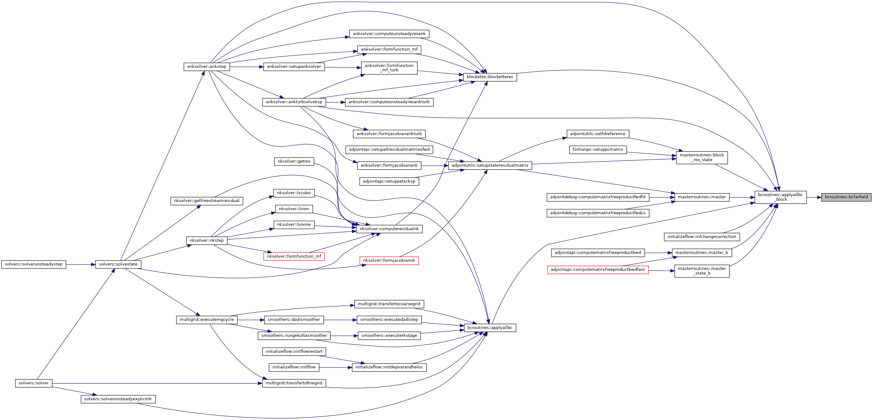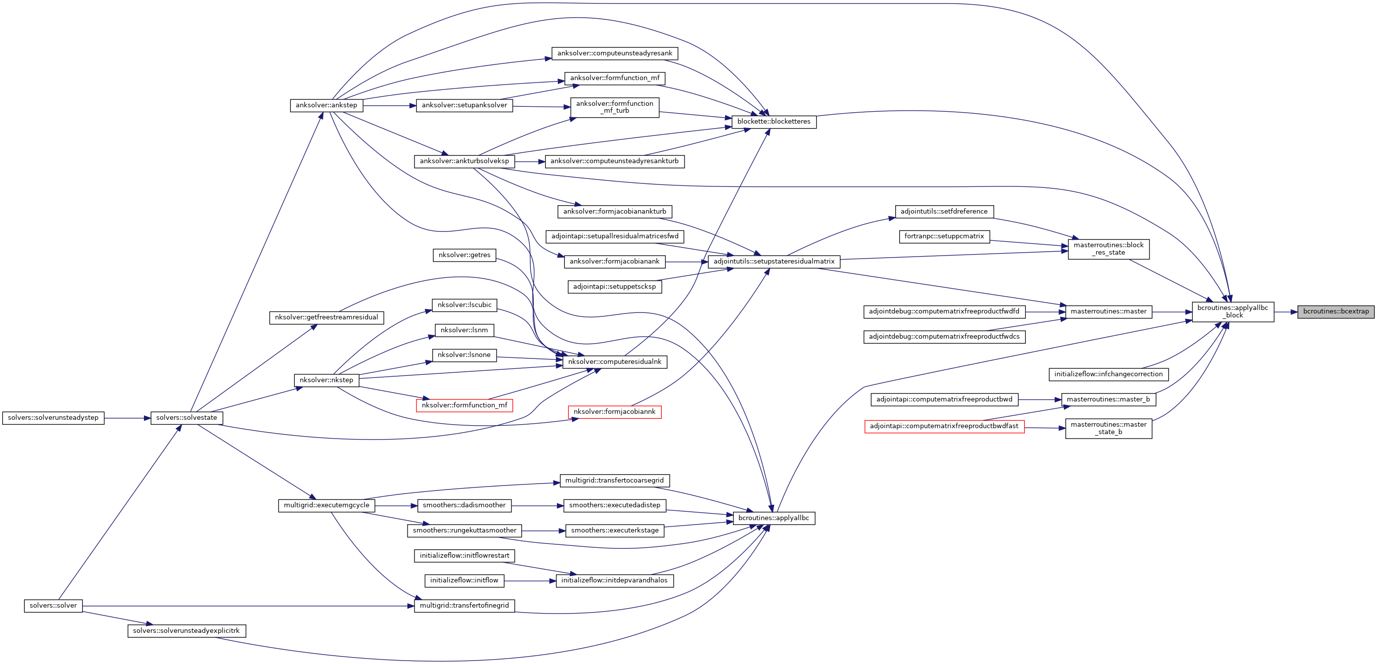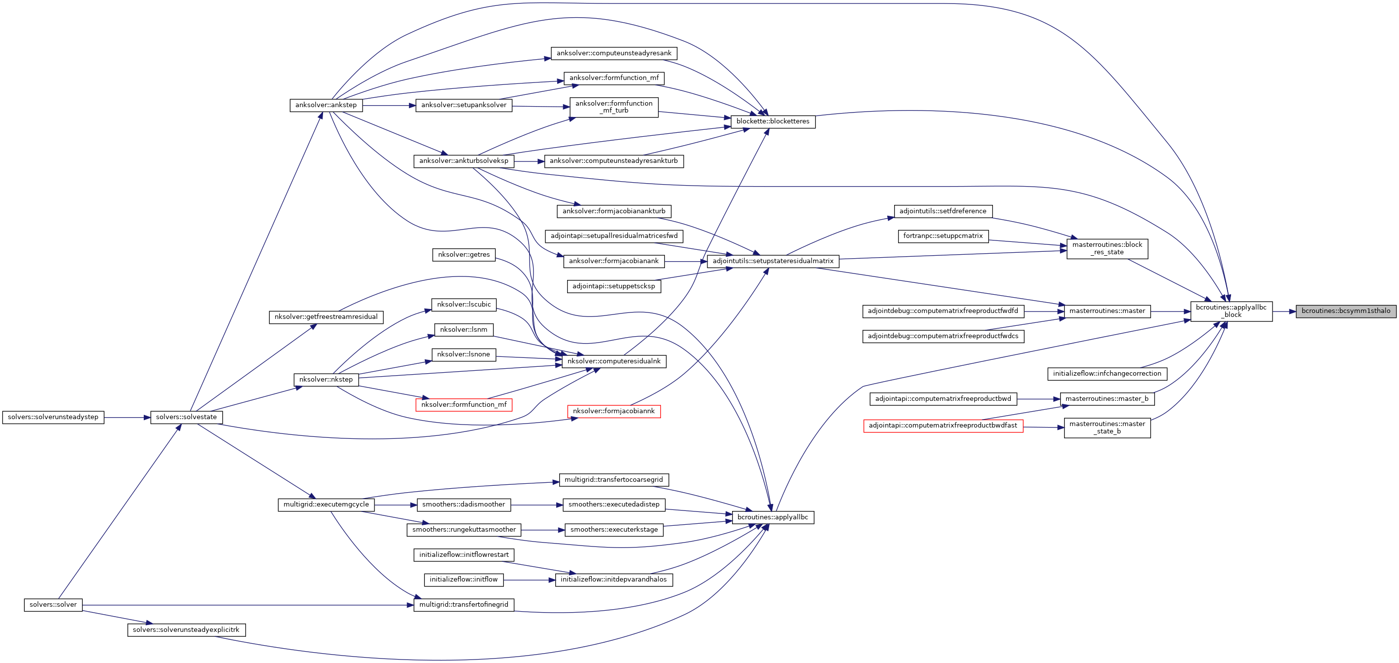 References blockpointers::aa, bceulerwall(), bcextrap(), bcfarfield(), bcnswalladiabatic(), bcnswallisothermal(), bcsubsonicinflow(), bcsubsonicoutflow(), bcsupersonicinflow(), bcsymm1sthalo(), bcsymm2ndhalo(), bcsymmpolar1sthalo(), bcsymmpolar2ndhalo(), blockpointers::bctype, blockpointers::bmti1, blockpointers::bmti2, blockpointers::bmtj1, blockpointers::bmtj2, blockpointers::bmtk1, blockpointers::bmtk2, blockpointers::d2wall, blockpointers::dw, constants::eulerwall, constants::extrap, constants::farfield, blockpointers::fw, blockpointers::gamma, utils::getcorrectfork(), blockpointers::il, blockpointers::jl, blockpointers::kl, constants::massbleedoutflow, blockpointers::nbocos, constants::nswalladiabatic, constants::nswallisothermal, blockpointers::nviscbocos, blockpointers::p, blockpointers::rev, blockpointers::rlv, blockpointers::s, blockpointers::scratch, blockpointers::sectionid, utils::setbcpointers(), blockpointers::sfacei, blockpointers::sfacej, blockpointers::sfacek, blockpointers::si, blockpointers::sj, blockpointers::sk, constants::subsonicinflow, constants::subsonicoutflow, constants::supersonicinflow, constants::supersonicoutflow, constants::symm, constants::symmpolar, blockpointers::vol, blockpointers::volold, blockpointers::w, blockpointers::wold, and blockpointers::x.