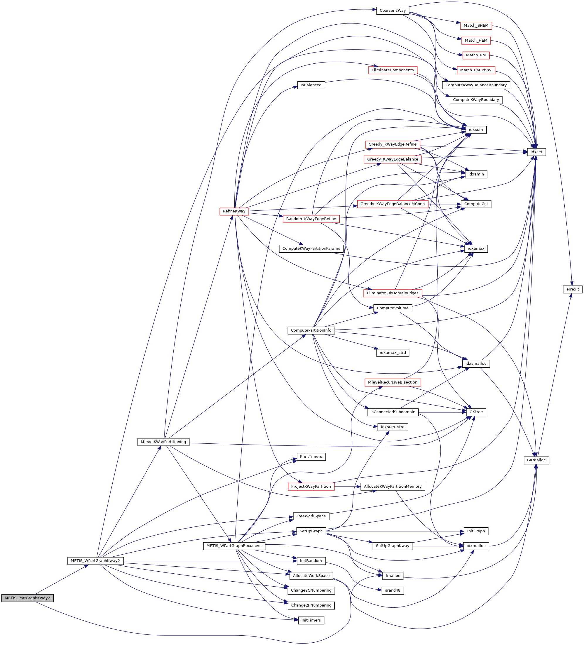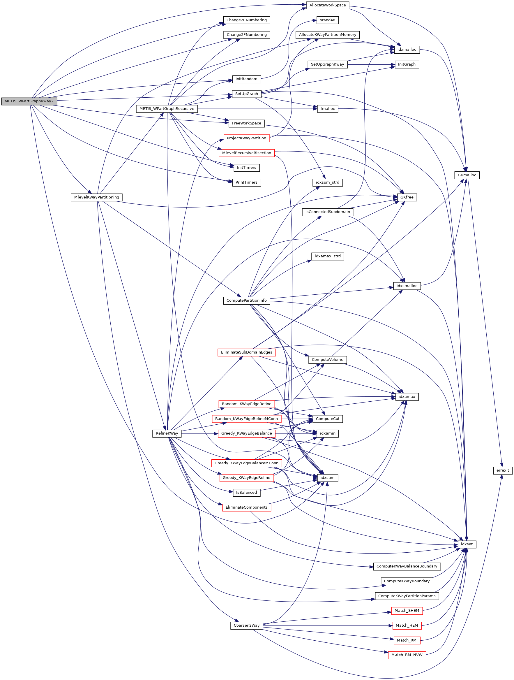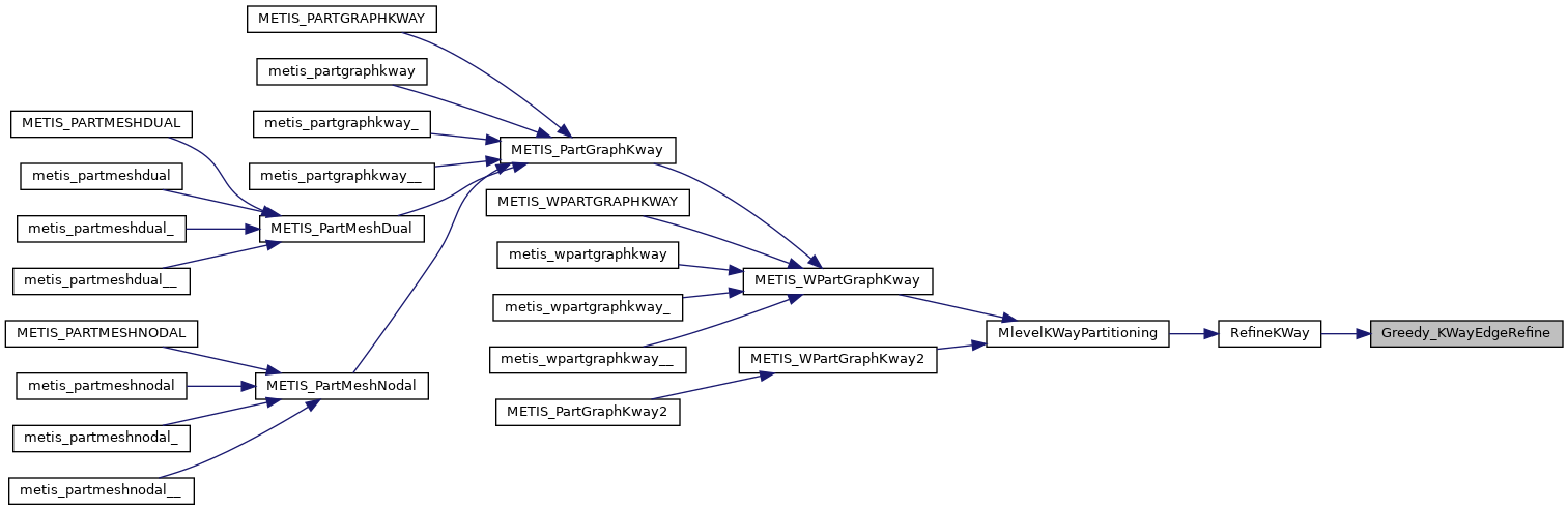 | void | metis_partgraphkway_ (int *nvtxs, idxtype *xadj, idxtype *adjncy, idxtype *vwgt, idxtype *adjwgt, int *wgtflag, int *numflag, int *nparts, int *options, int *edgecut, idxtype *part) |