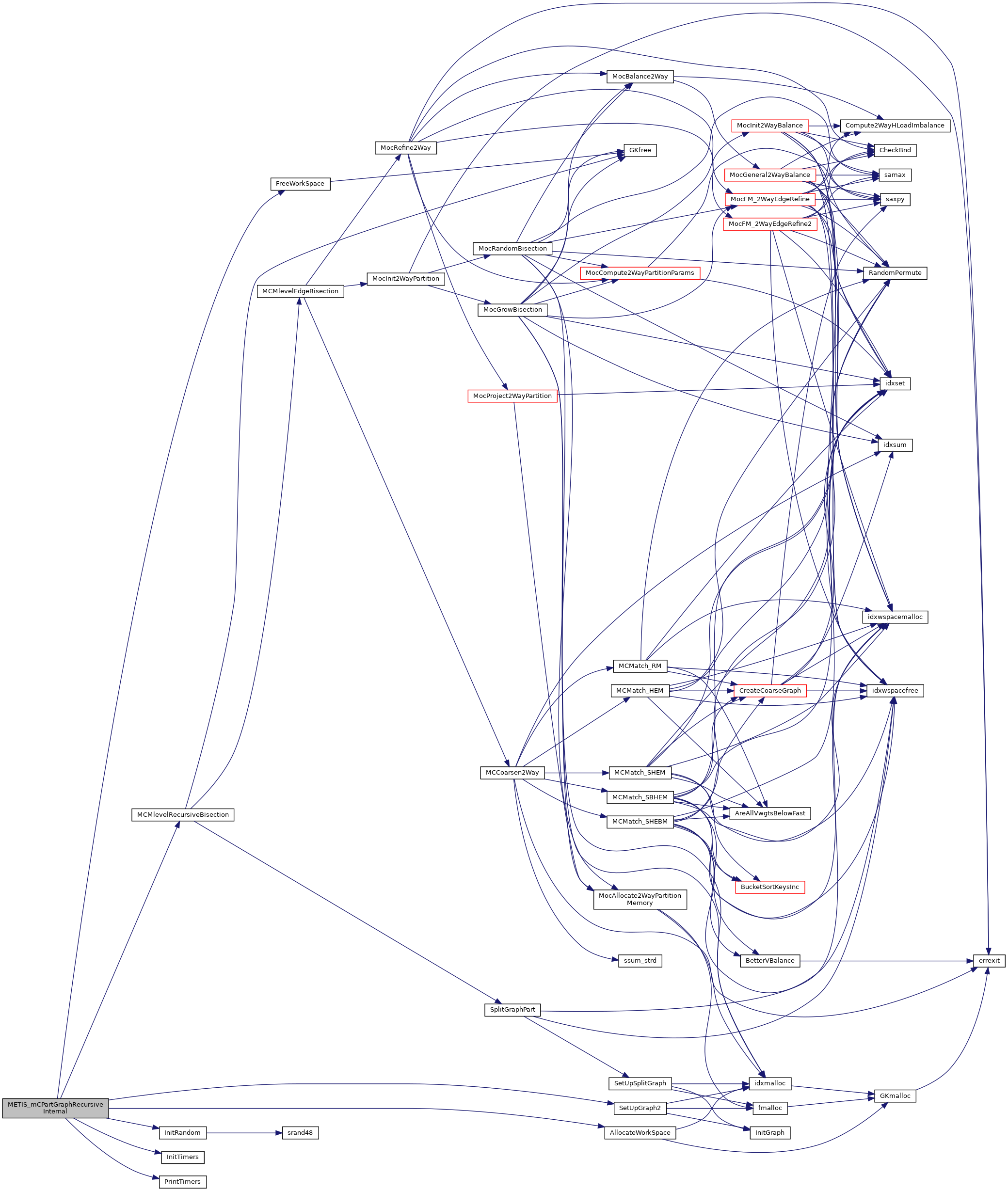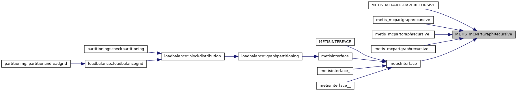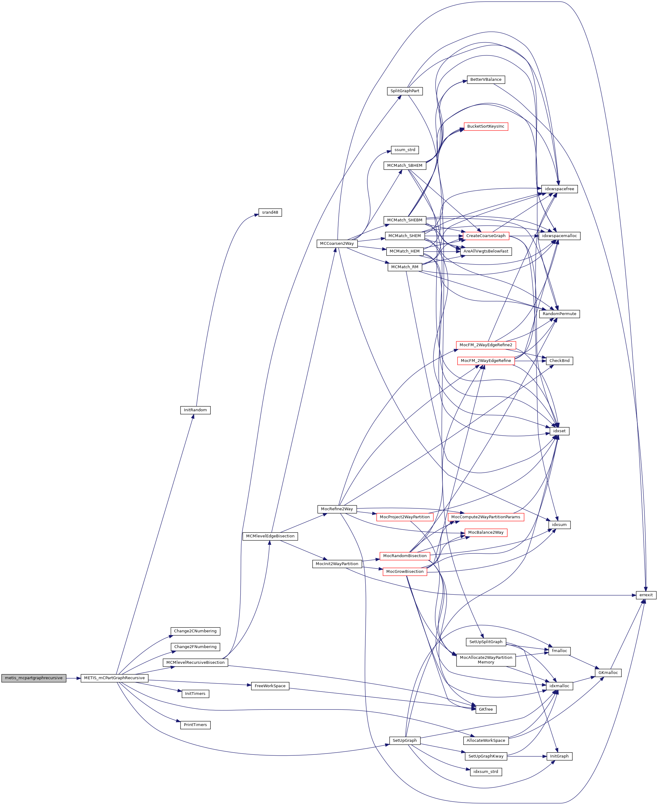 | void | metis_mcpartgraphrecursive (int *nvtxs, int *ncon, idxtype *xadj, idxtype *adjncy, idxtype *vwgt, idxtype *adjwgt, int *wgtflag, int *numflag, int *nparts, int *options, int *edgecut, idxtype *part) |