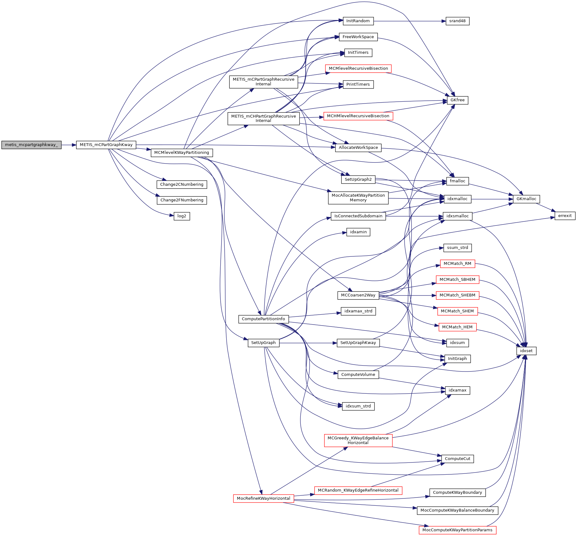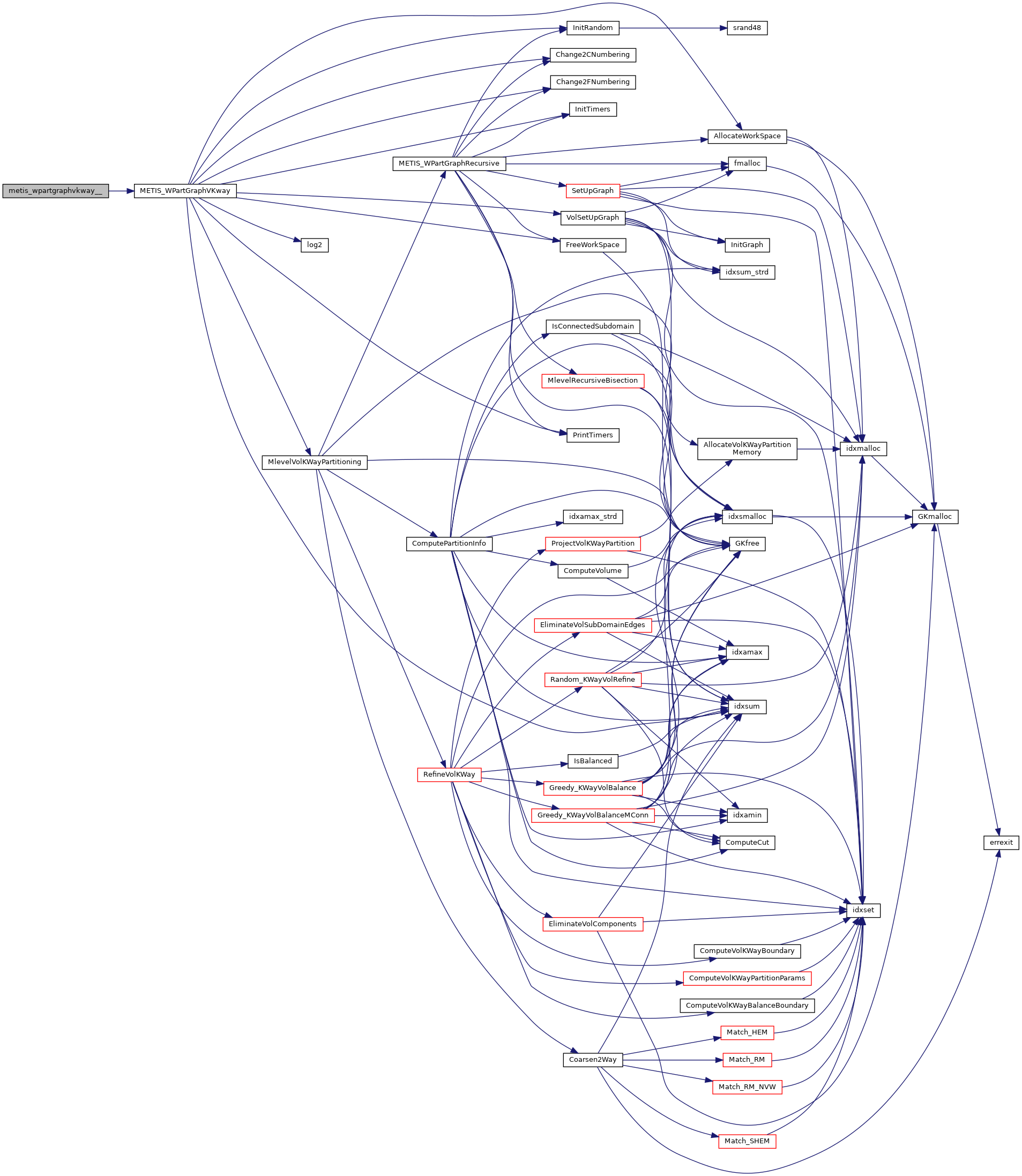 | void | metis_partgraphkway__ (int *nvtxs, idxtype *xadj, idxtype *adjncy, idxtype *vwgt, idxtype *adjwgt, int *wgtflag, int *numflag, int *nparts, int *options, int *edgecut, idxtype *part) |