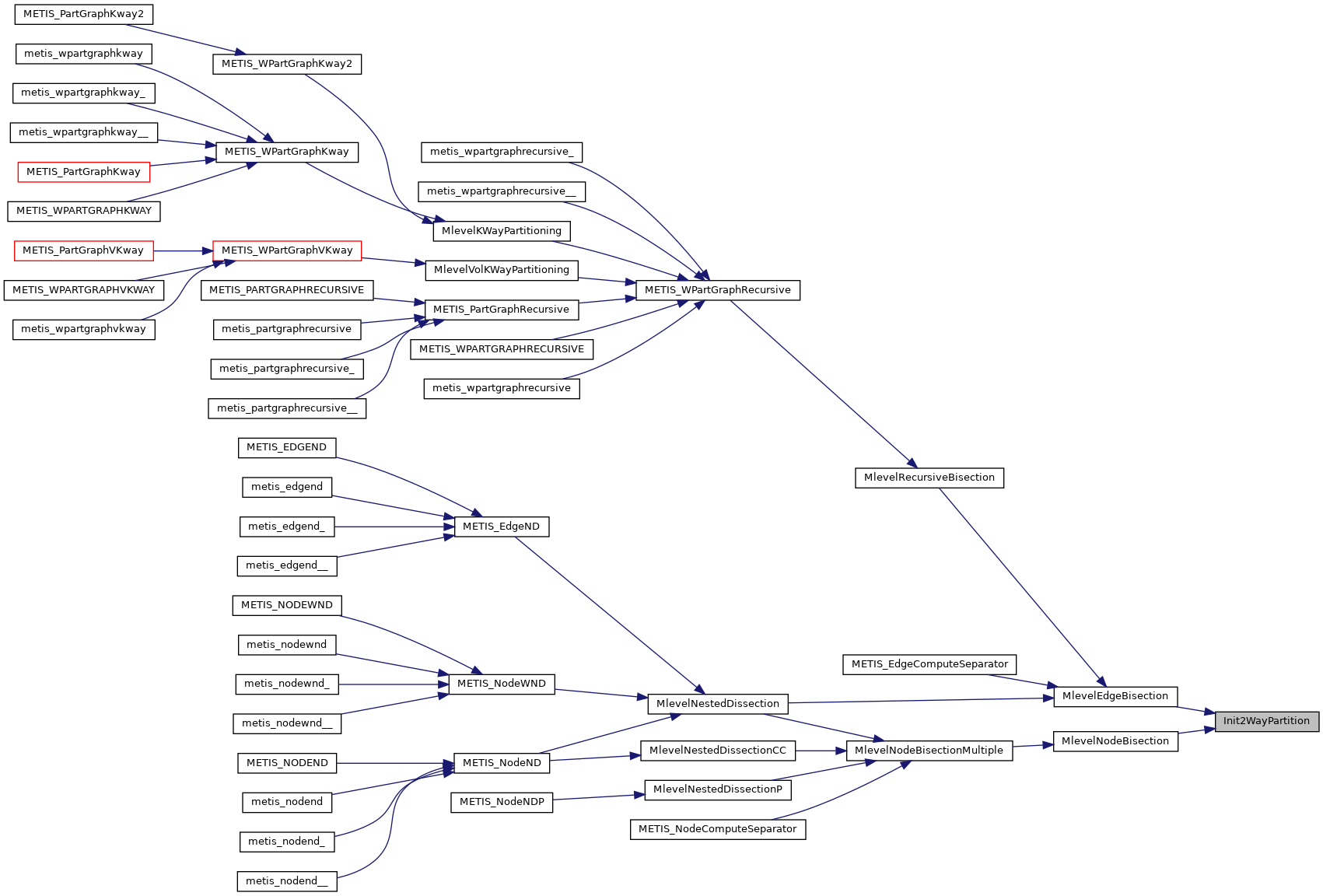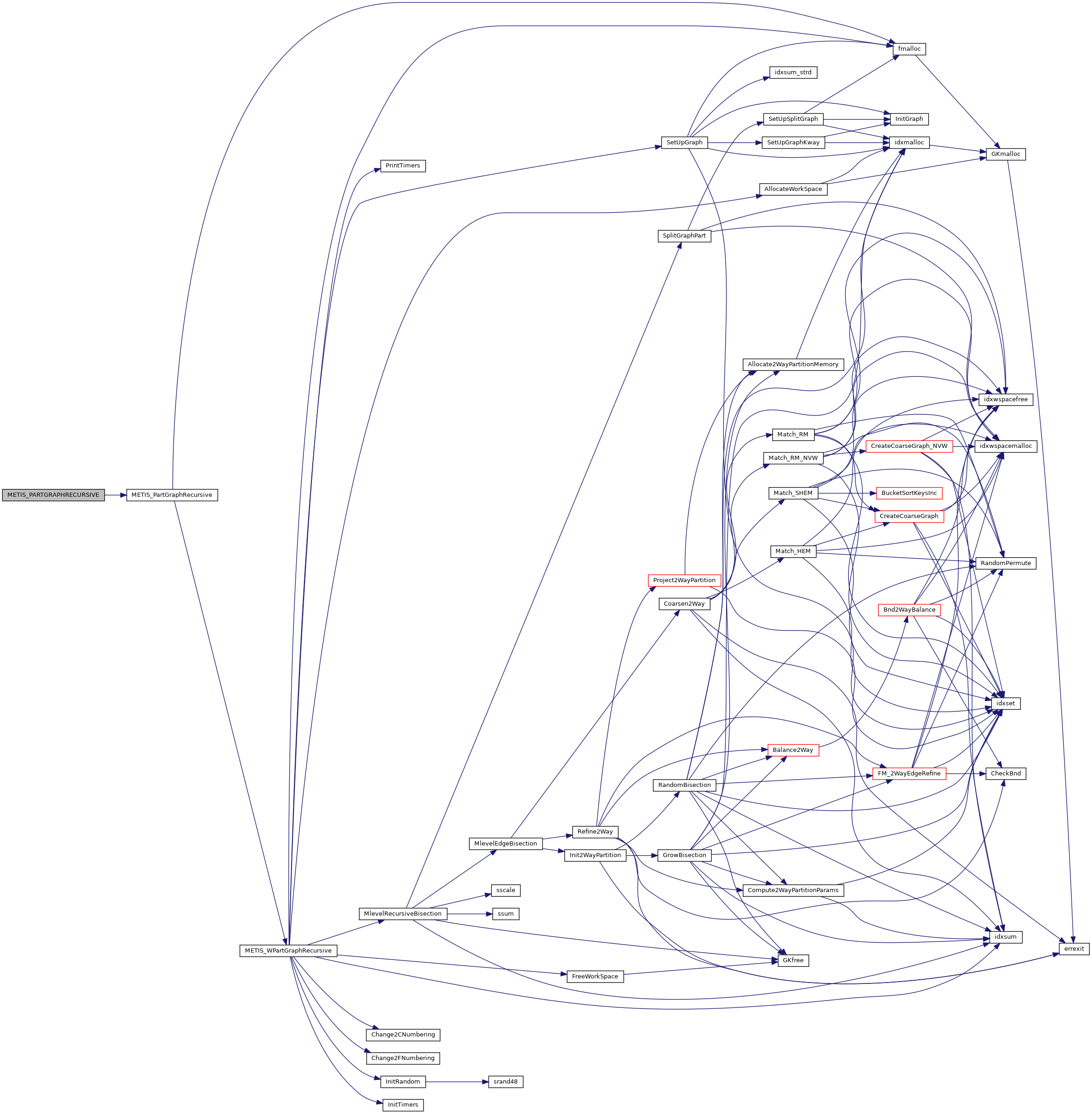 | void | METIS_PARTGRAPHRECURSIVE (int *nvtxs, idxtype *xadj, idxtype *adjncy, idxtype *vwgt, idxtype *adjwgt, int *wgtflag, int *numflag, int *nparts, int *options, int *edgecut, idxtype *part) |