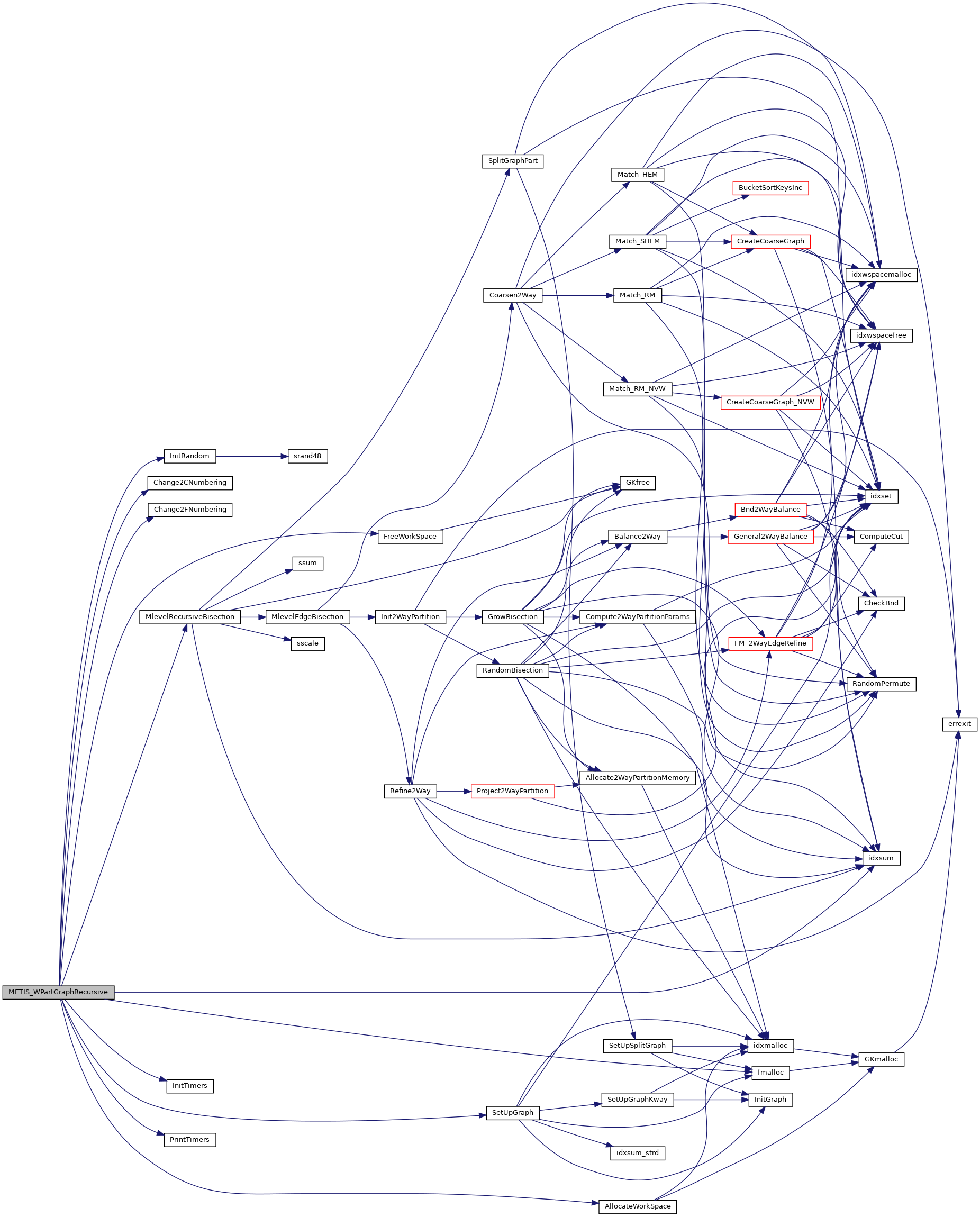 | void | metis_wpartgraphrecursive (int *nvtxs, idxtype *xadj, idxtype *adjncy, idxtype *vwgt, idxtype *adjwgt, int *wgtflag, int *numflag, int *nparts, float *tpwgts, int *options, int *edgecut, idxtype *part) |