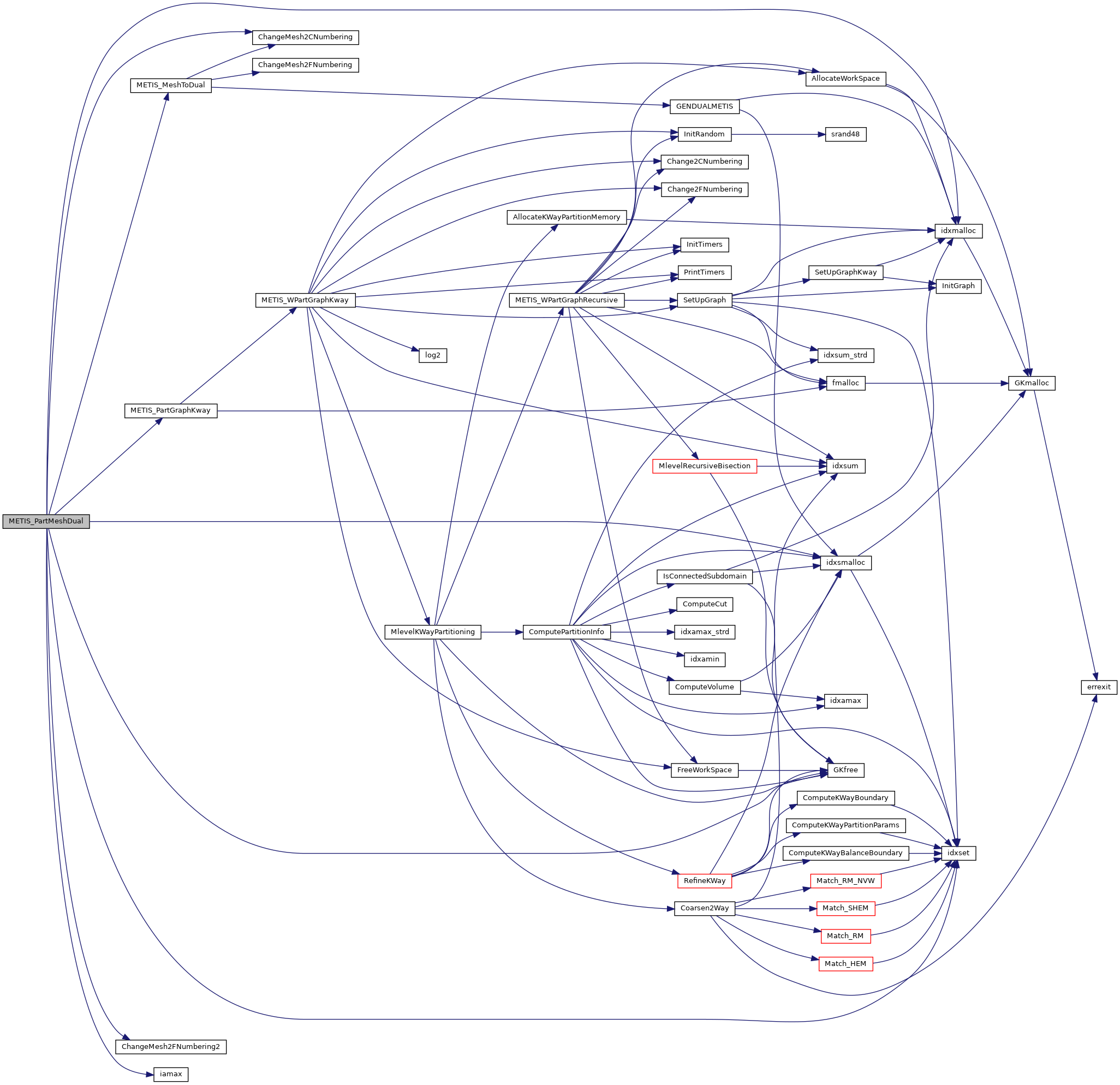 | void | metis_partmeshdual__ (int *ne, int *nn, idxtype *elmnts, int *etype, int *numflag, int *nparts, int *edgecut, idxtype *epart, idxtype *npart) |
