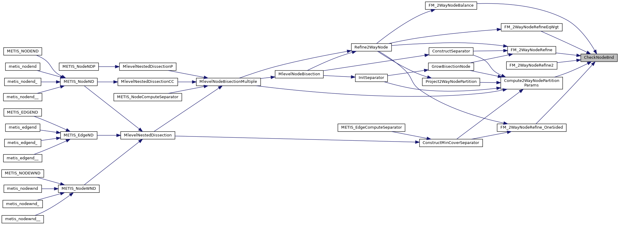 | void | METIS_NODEWND (int *nvtxs, idxtype *xadj, idxtype *adjncy, idxtype *vwgt, int *numflag, int *options, idxtype *perm, idxtype *iperm) |
