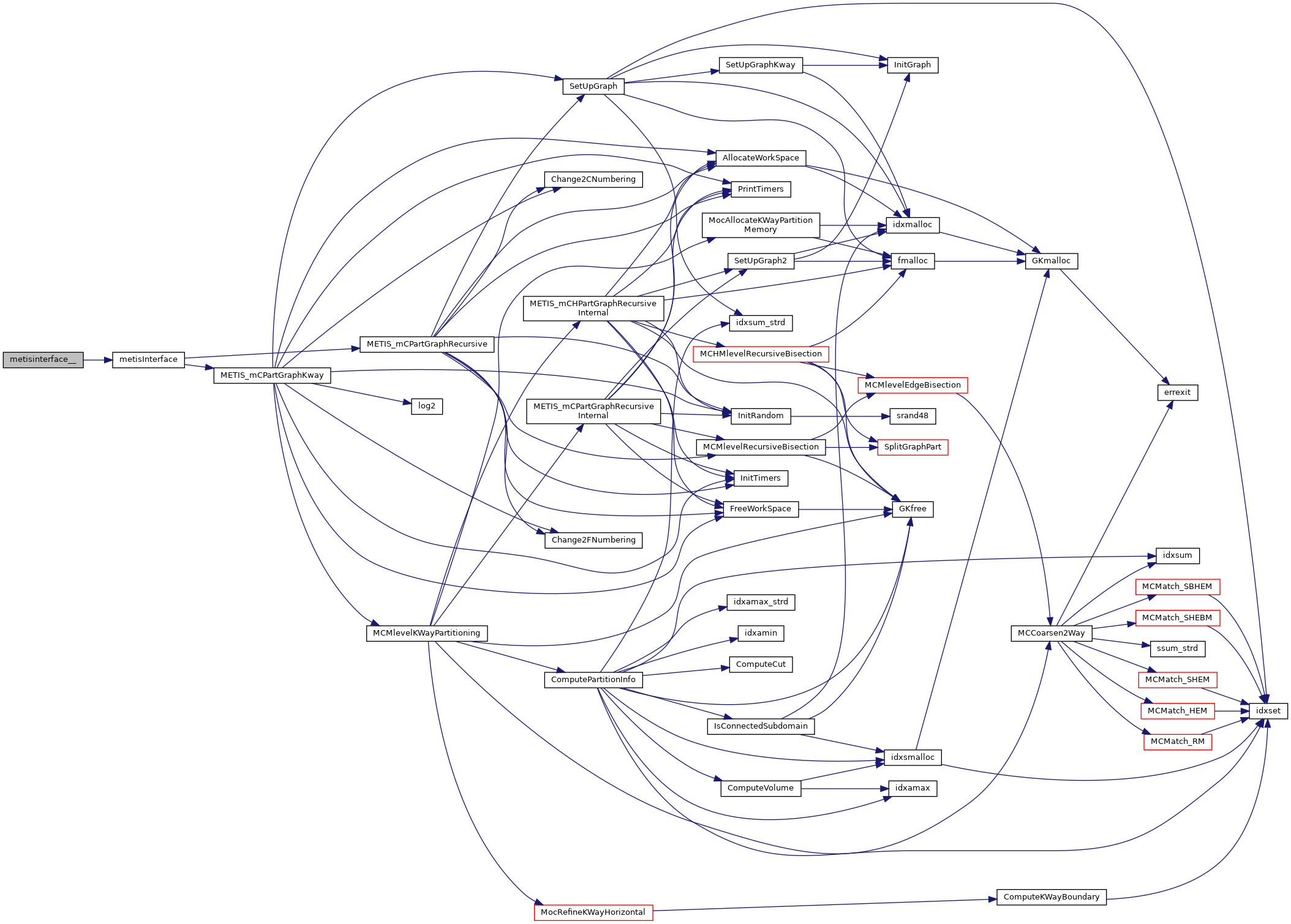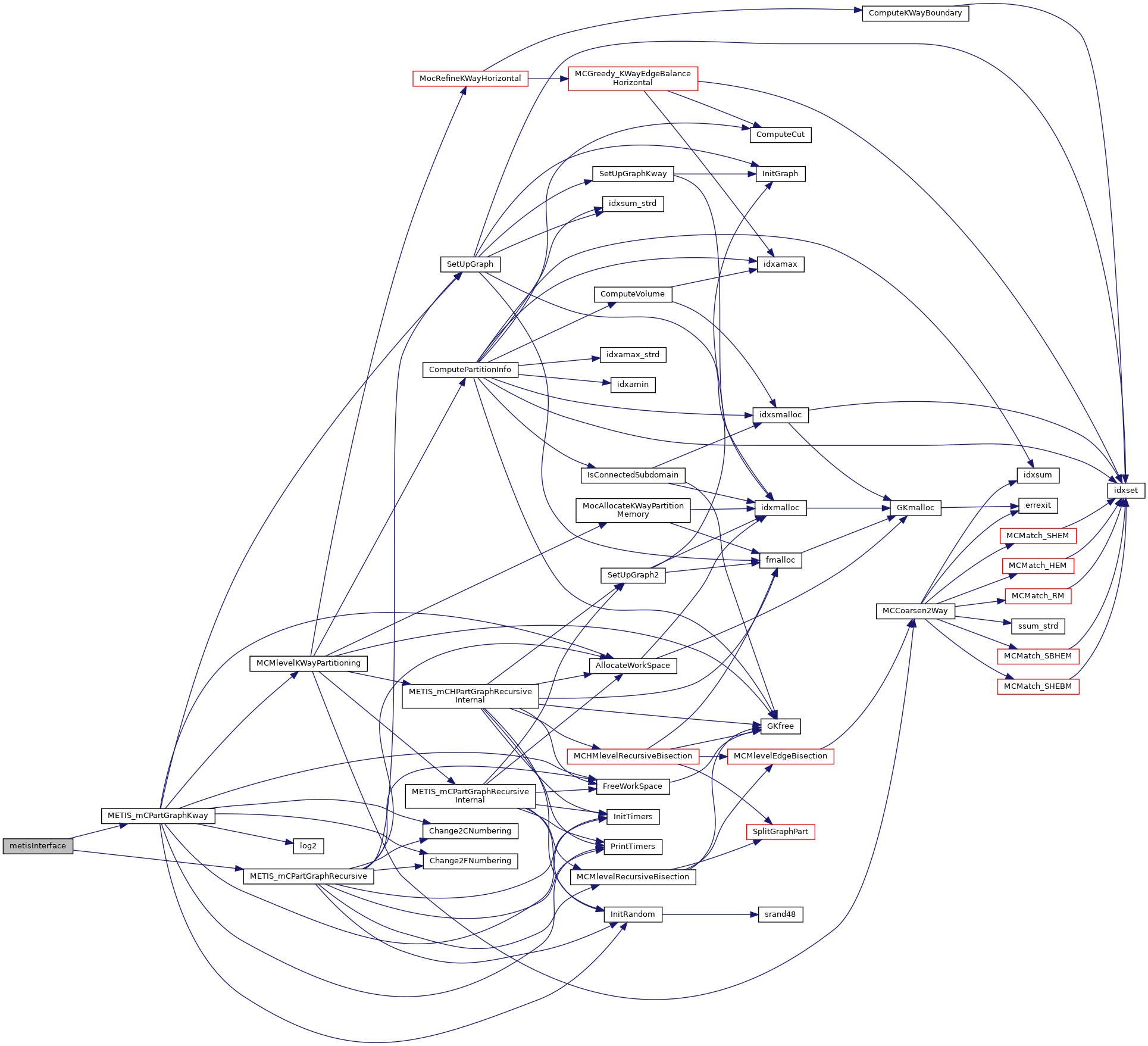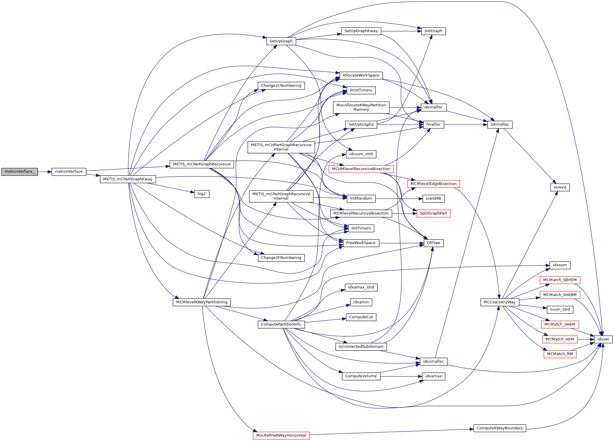 | void | metisInterface (int *n, int *ncon, idxtype *xadj, idxtype *adjncy, idxtype *vwgt, idxtype *adjwgt, int *wgtflag, int *numflag, int *nparts, float *ubvec, int *options, int *edgecut, idxtype *part) |